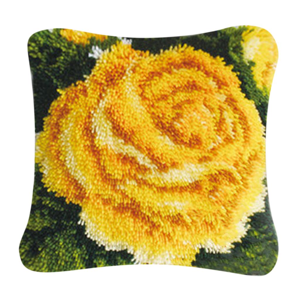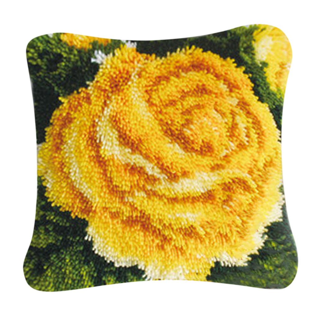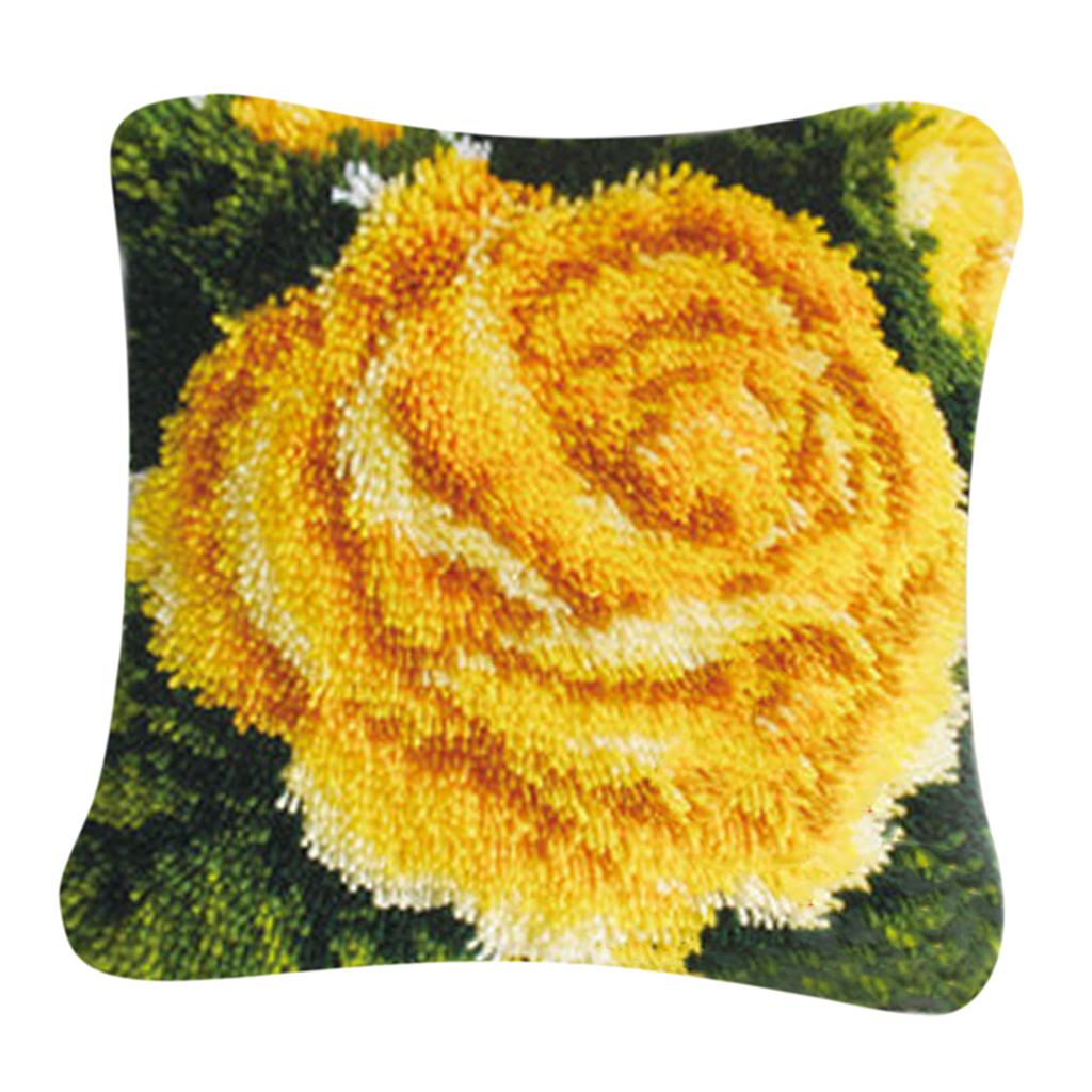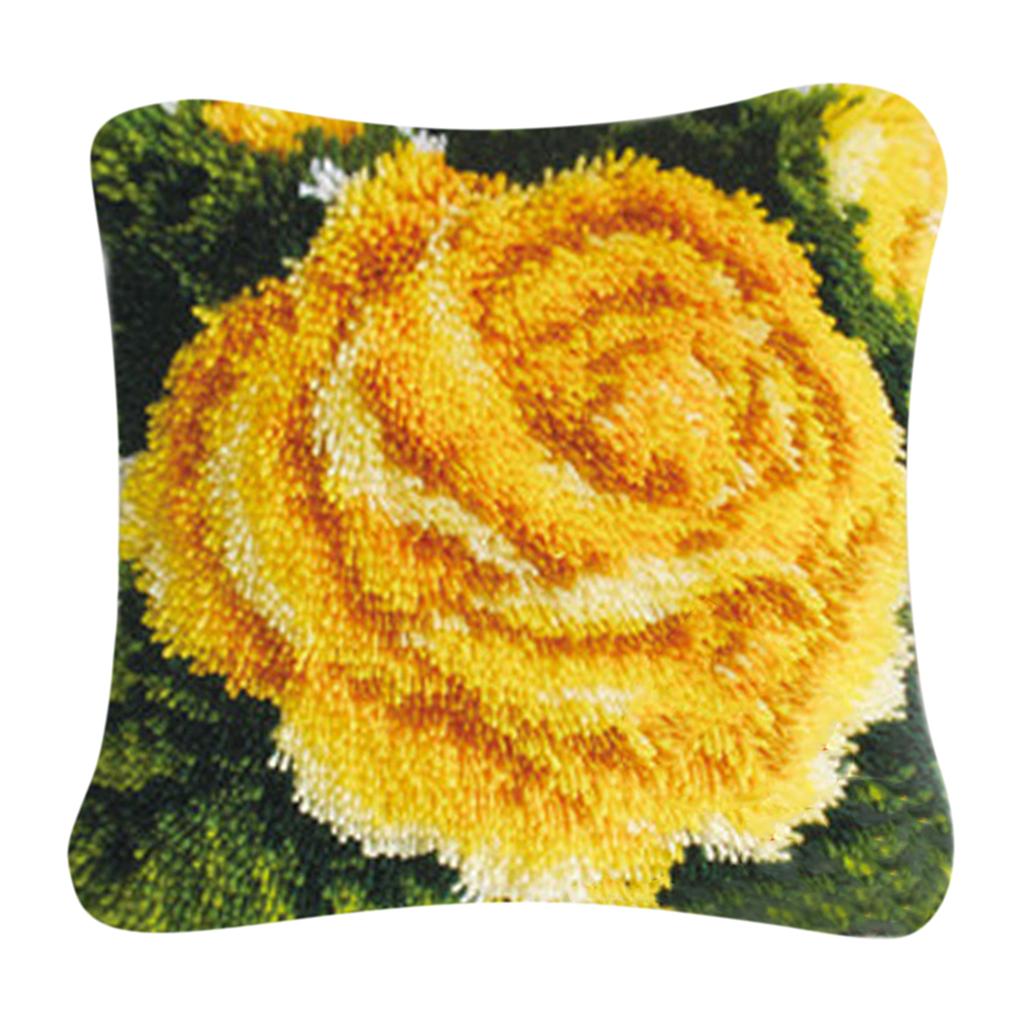 Yellow Rose Latch Hook Kit for DIY Pillow Cover Sofa Cushion Cover 40x40cm