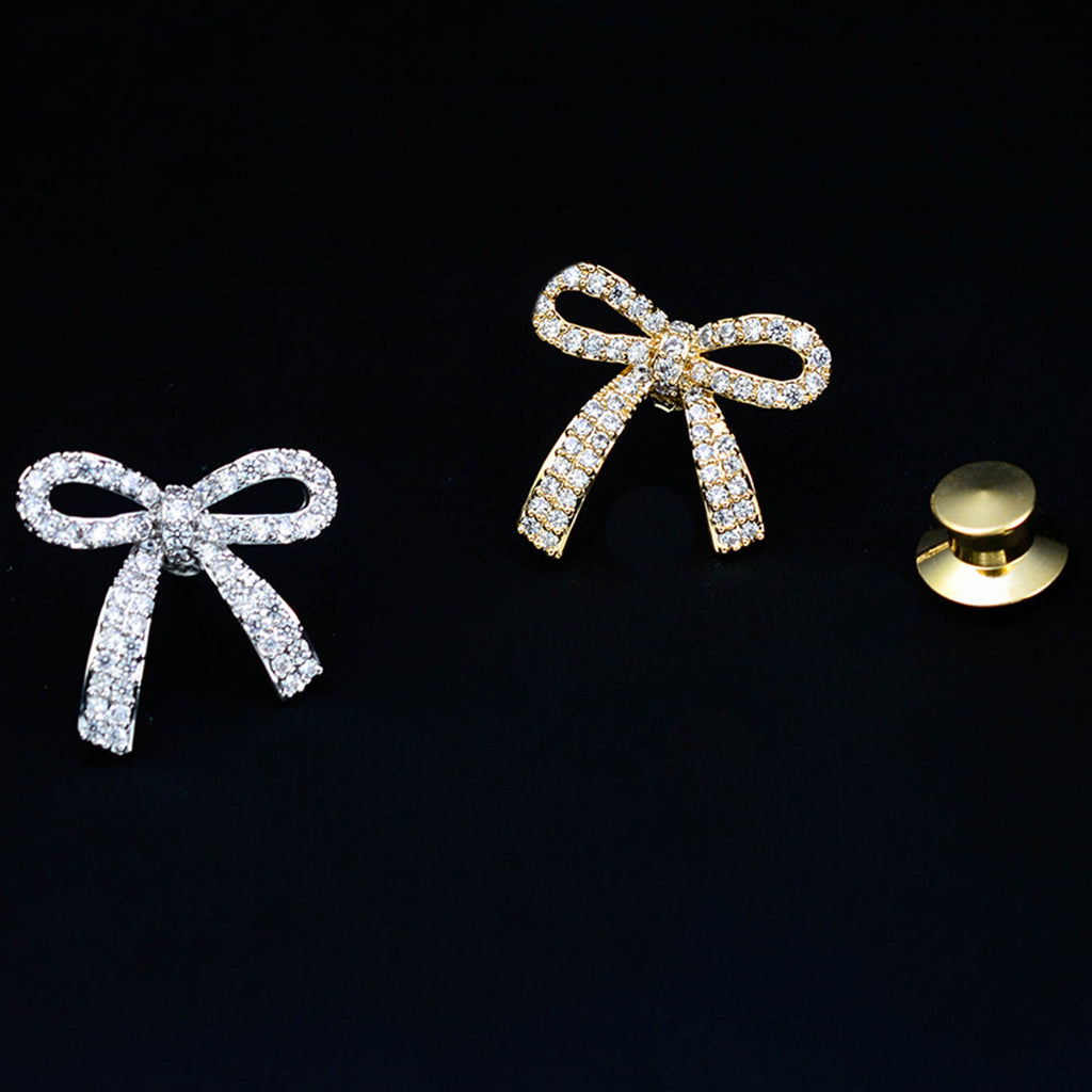 Maxbell 1 piece diamante bowknot pin back cluth brooch badge fashion jewelry Silver