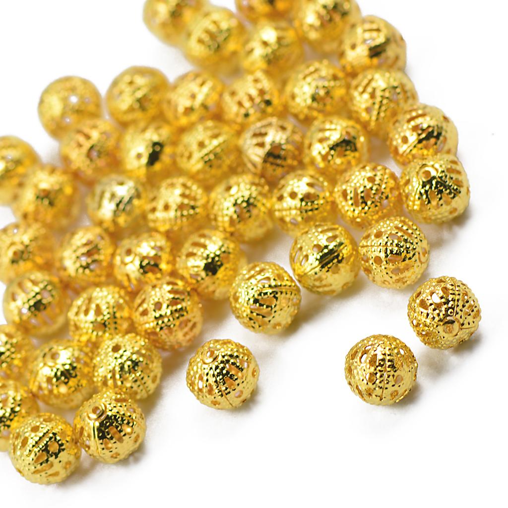 Maxbell 100pcs 8mm Round Metal Spacer Beads Jewelry DIY Making Loose Charms Gold