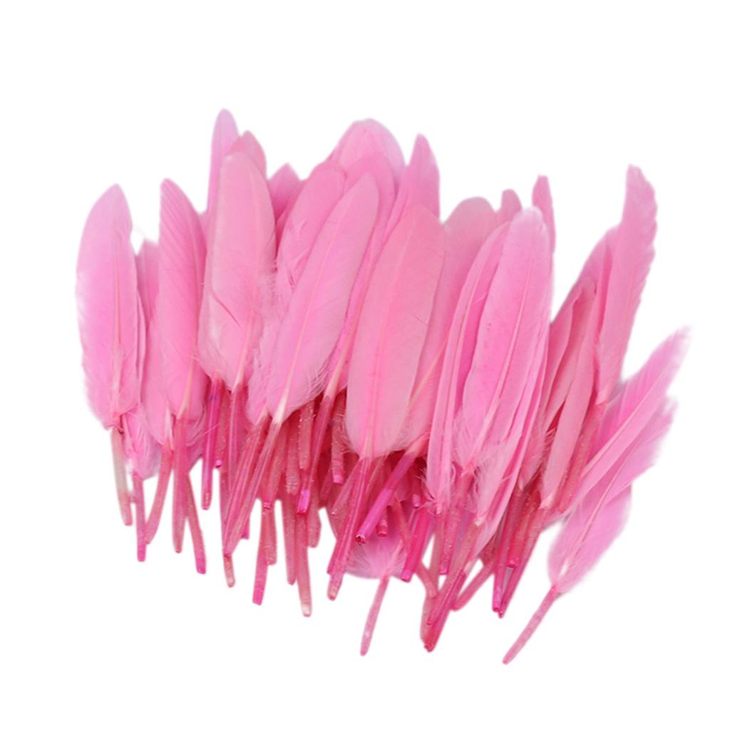 Maxbell 100pcs Dyed Goose Feather Jewelry Decor Headgear DIY Crafts 4-6" Pink&White