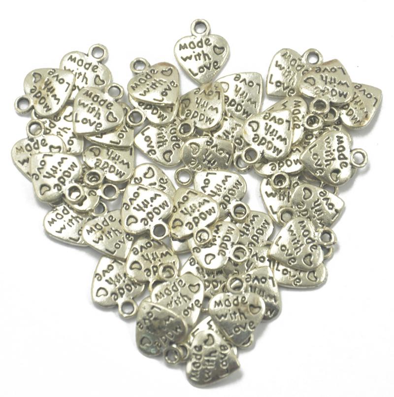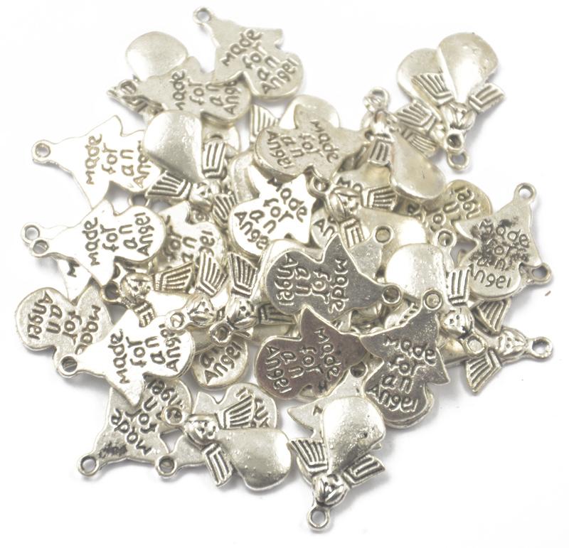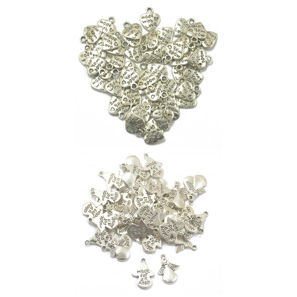 Maxbell 100pcs Heart & Angel Shape Charms for Jewelry Making Pendent Findings DIY Silver