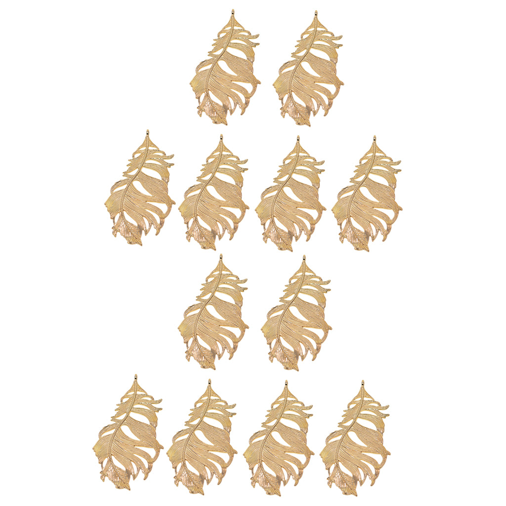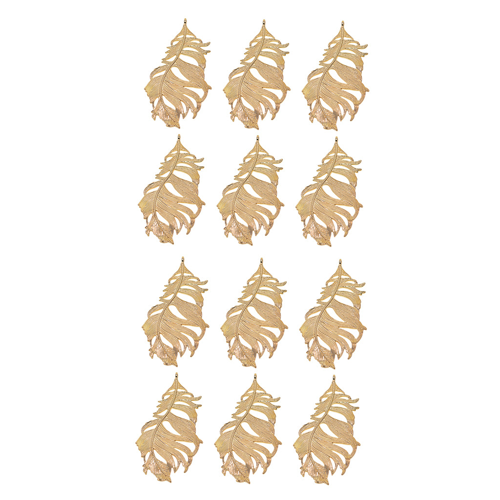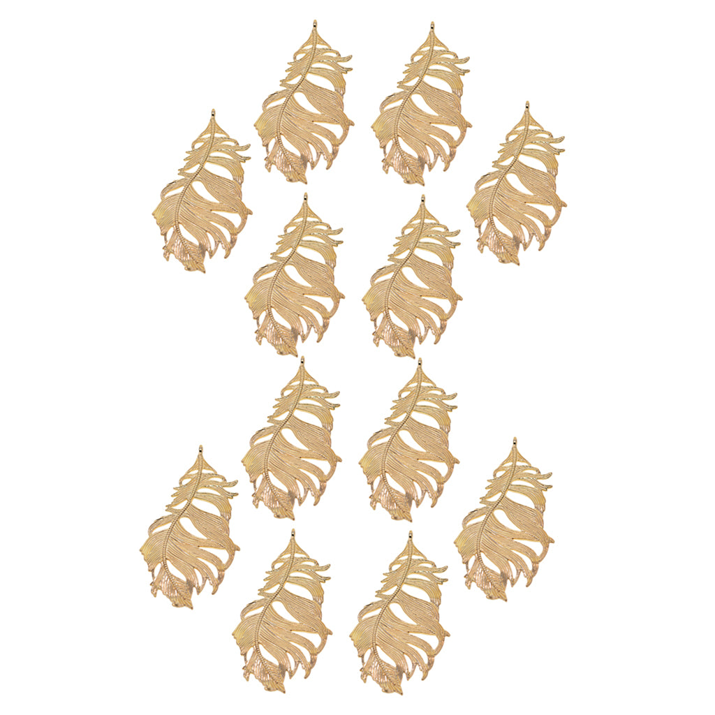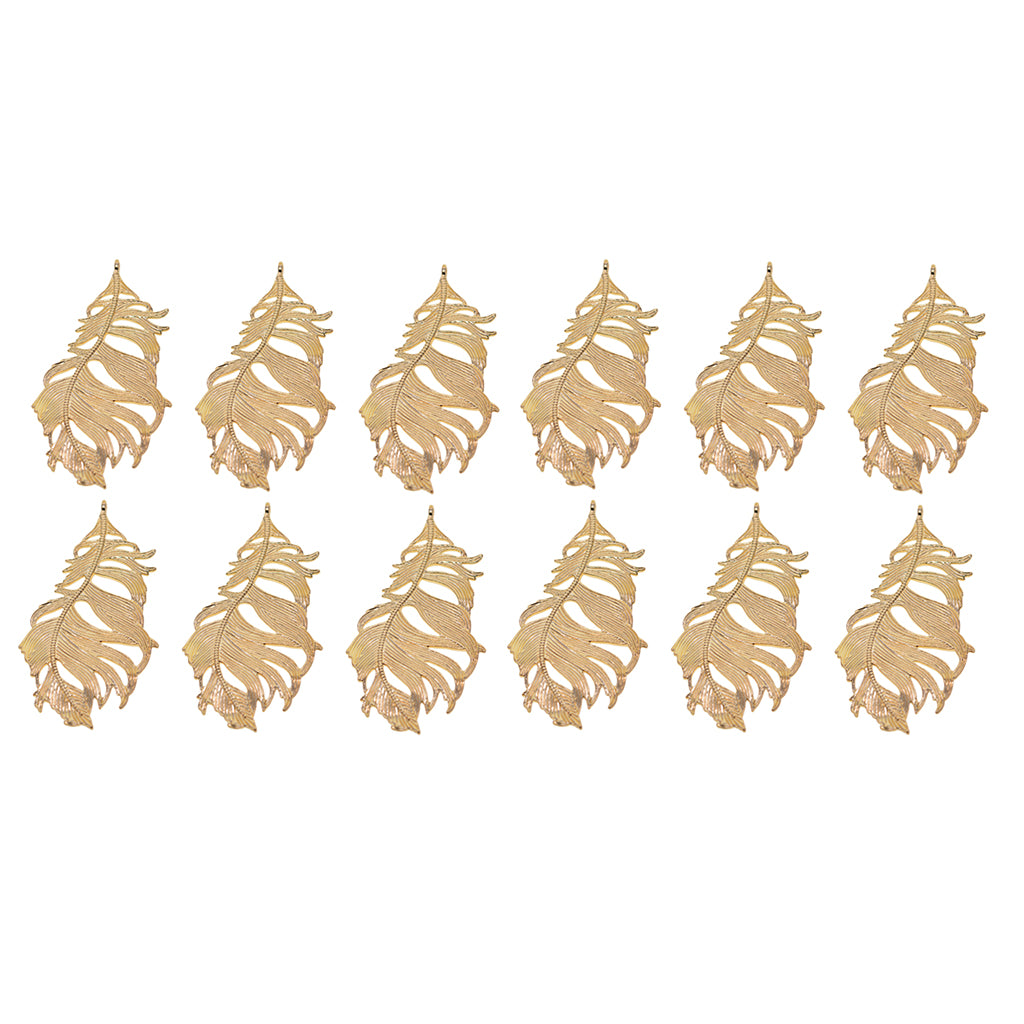 Maxbell 12Pcs Large Feather Charms Pendants DIY Bookmark Jewelry Findings Gold