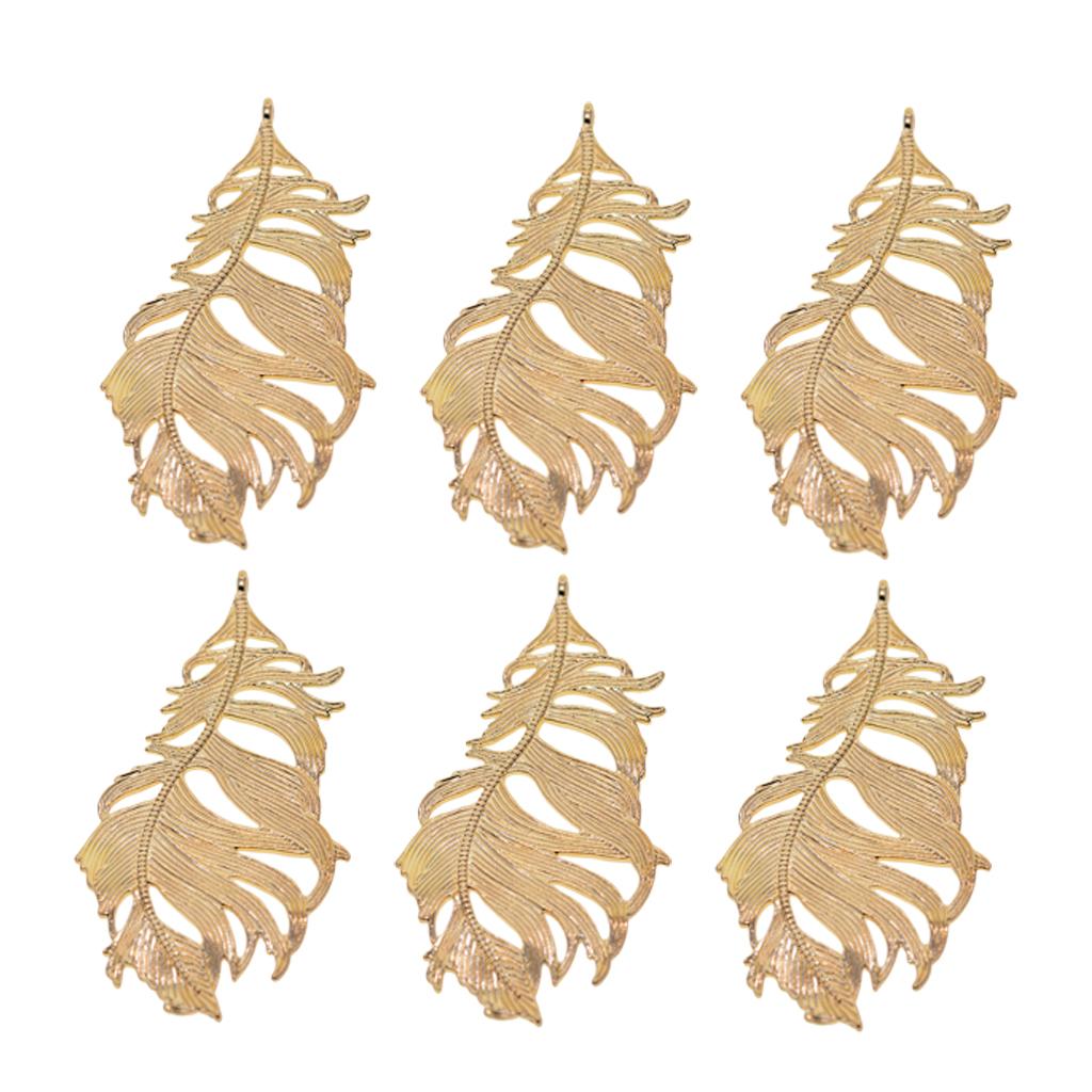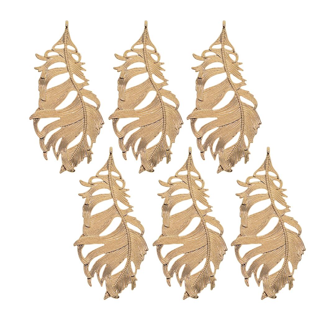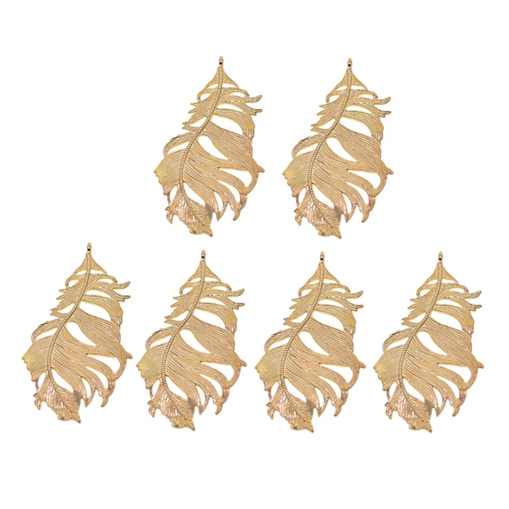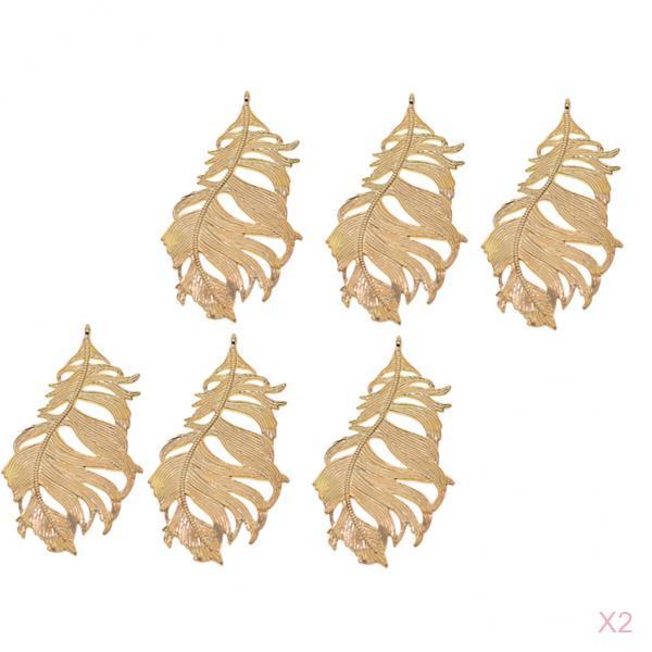 Maxbell 12Pcs Large Feather Charms Pendants DIY Bookmark Jewelry Findings Gold