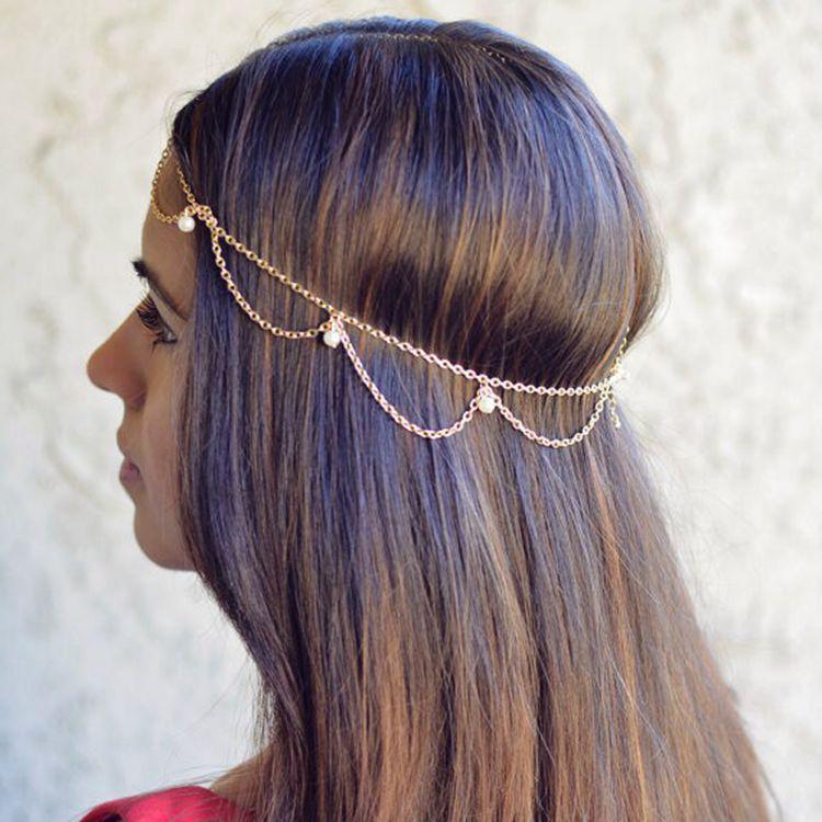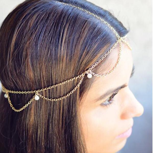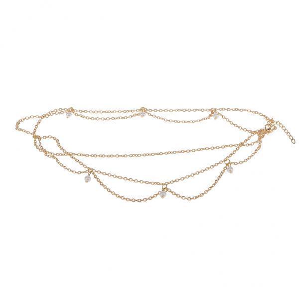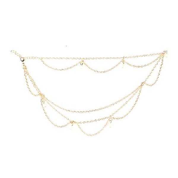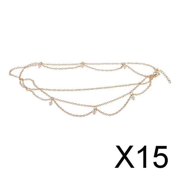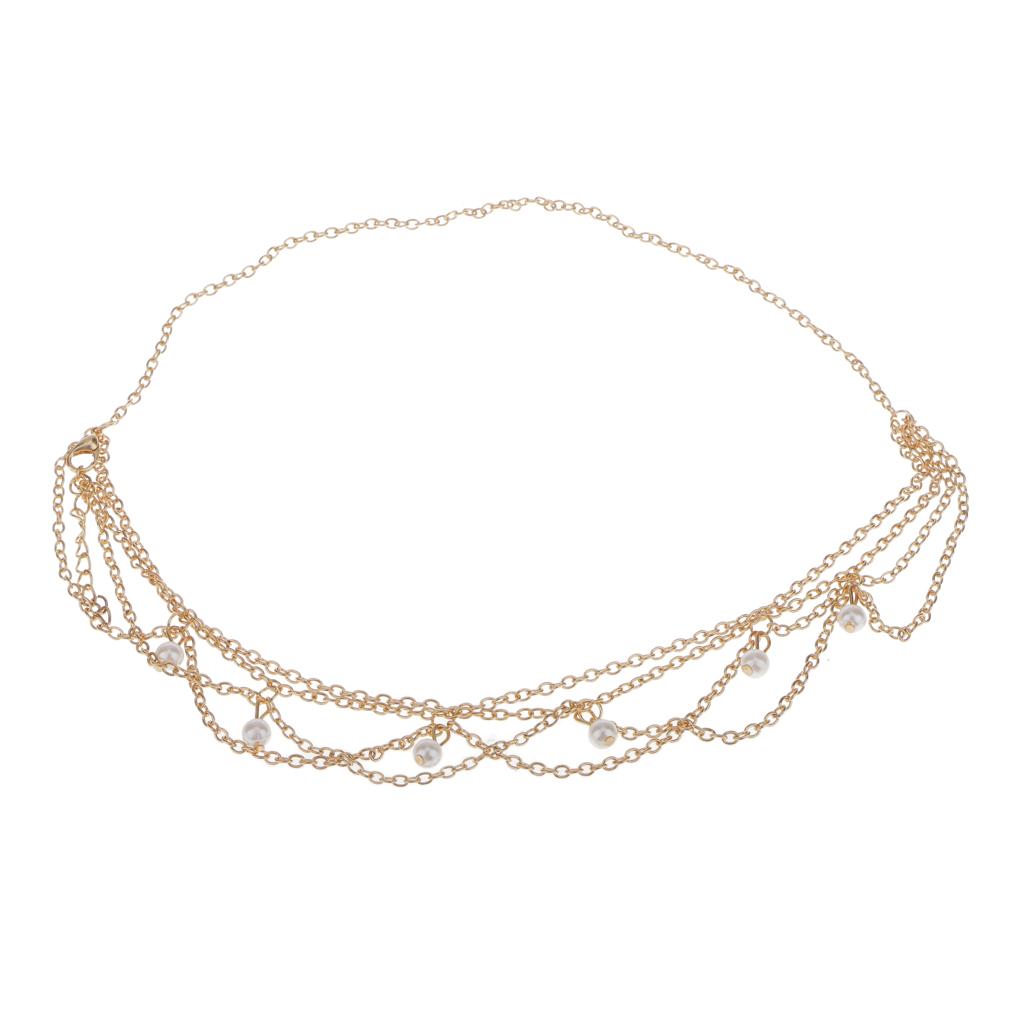Maxbell 15xGold Layered Faux Pearl Hairband Head Chain Hair Accessories Jewelry