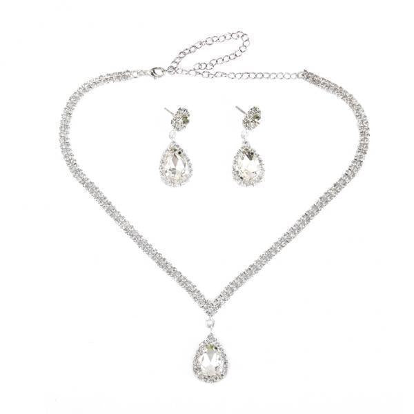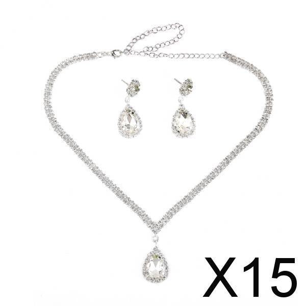 Maxbell 15xTeardrop Rhinestone Jewelry Necklace Earring Set Wedding Bridal Party
