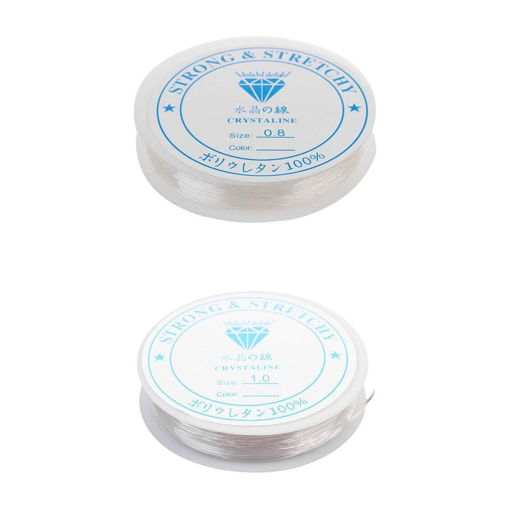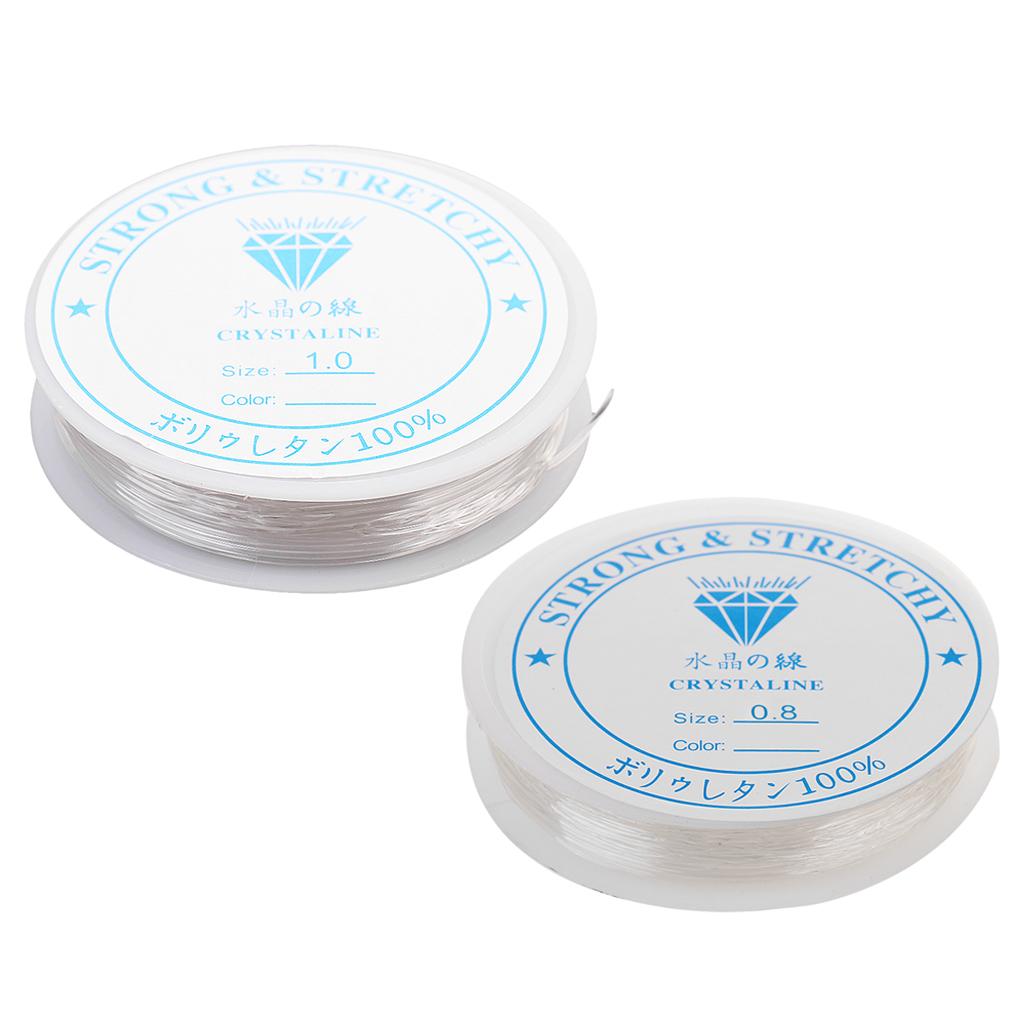 Maxbell 2 Pieces 10 Meters Clear Elastic Thread Cord For Jewelry Making 0.8mm 1.0mm