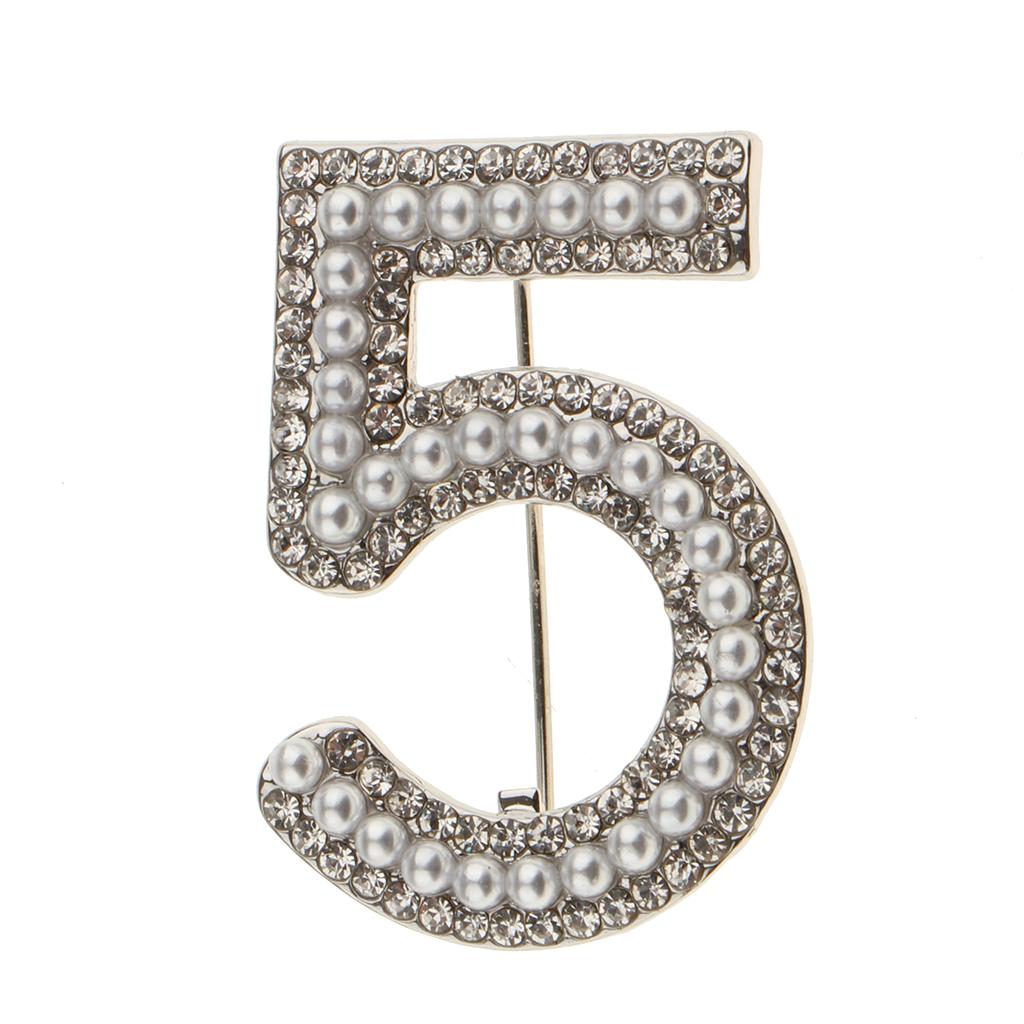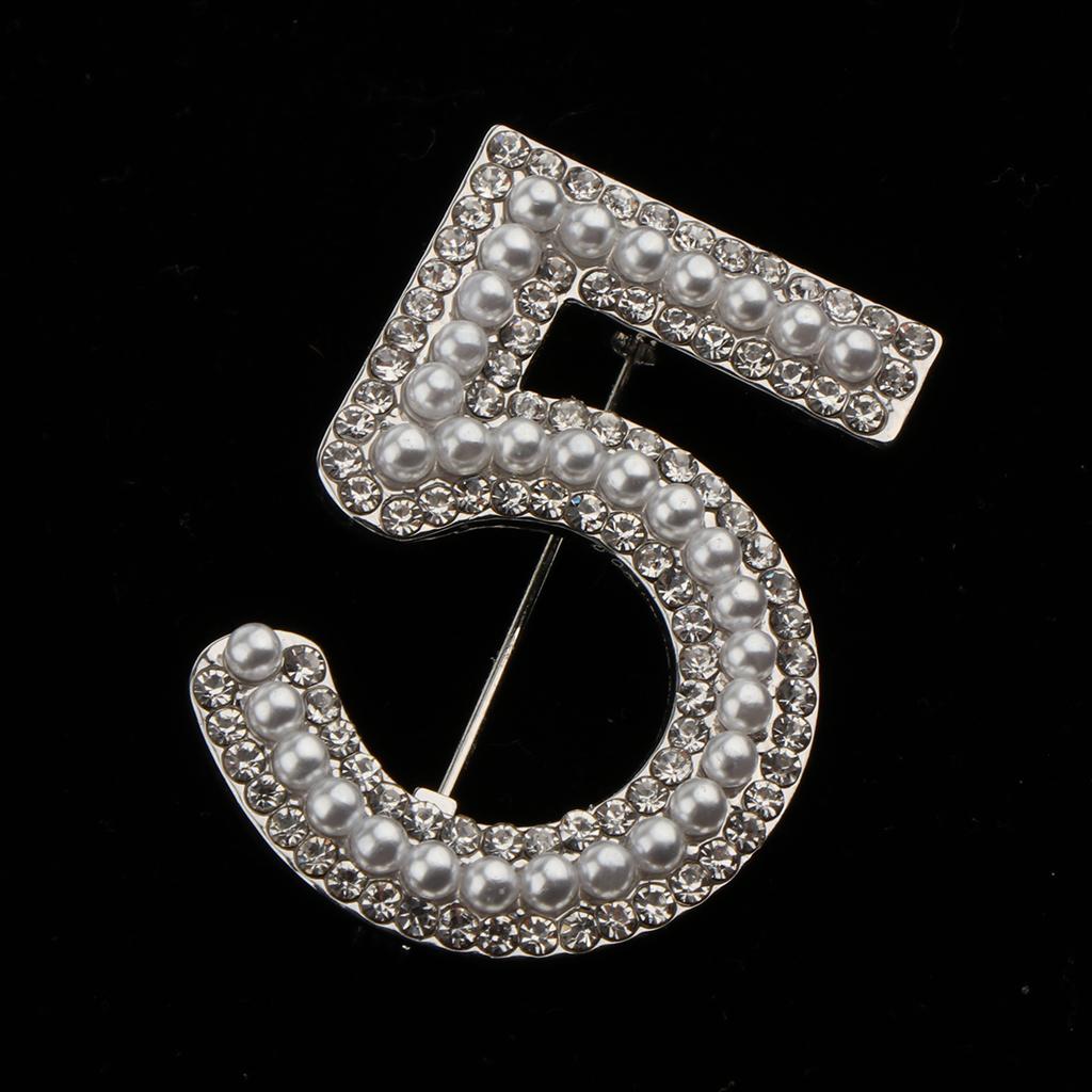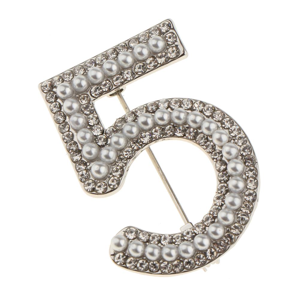 Maxbell 2 Pieces Crystal Rhinestone Imitation Pearls Number 5 Brooch Pin Jewelry