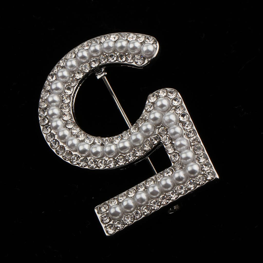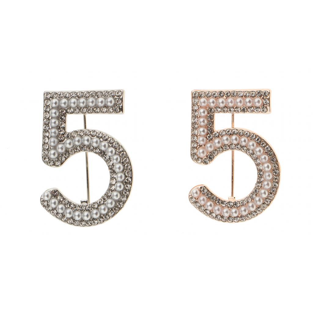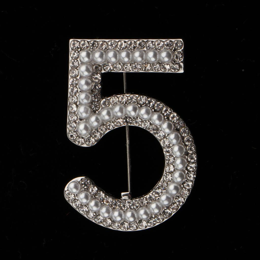 Maxbell 2 Pieces Crystal Rhinestone Imitation Pearls Number 5 Brooch Pin Jewelry