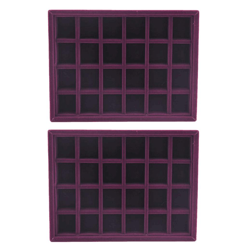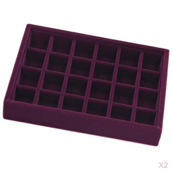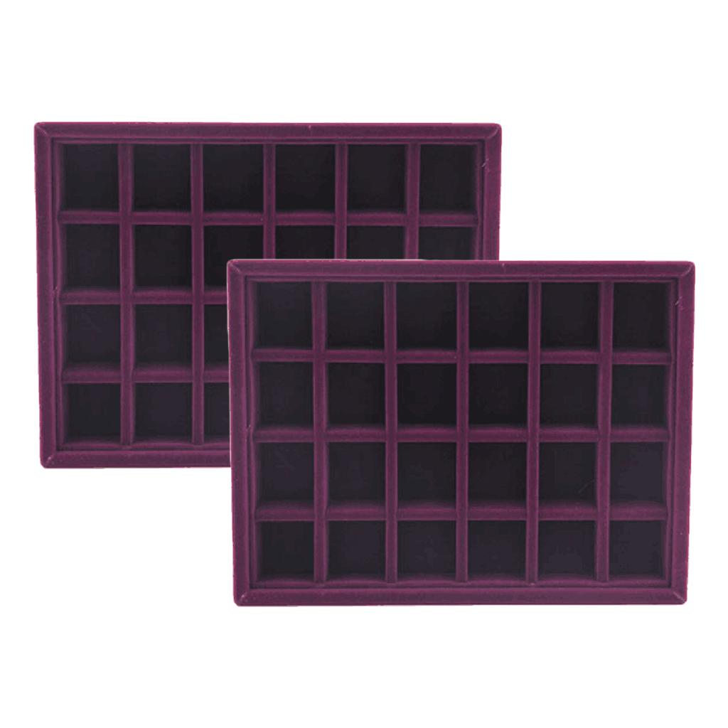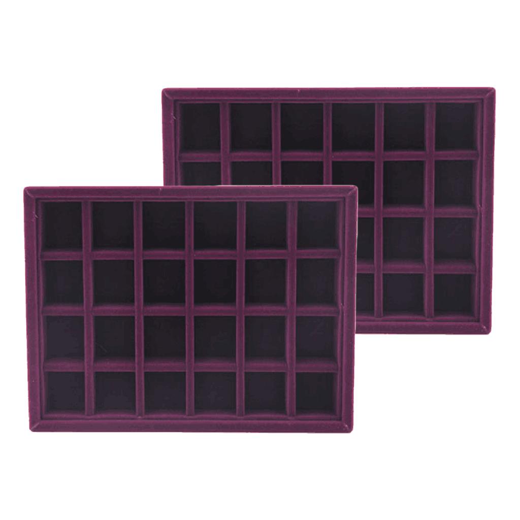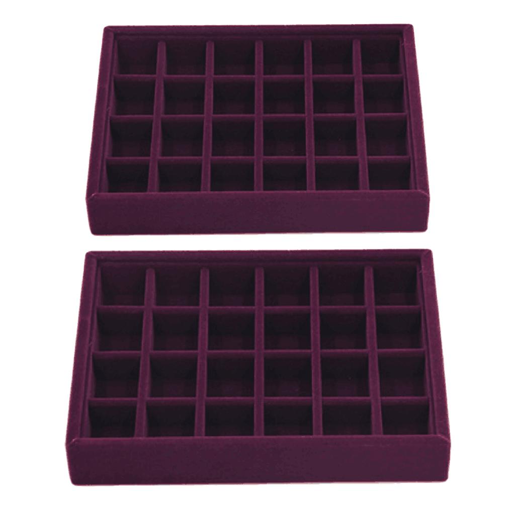 Maxbell 2 Pieces Elegant Velvet Stackable Jewelry Display Tray Case 24 Grids