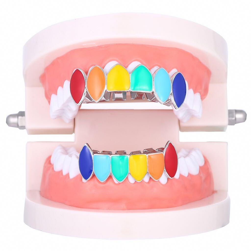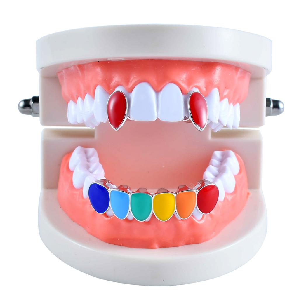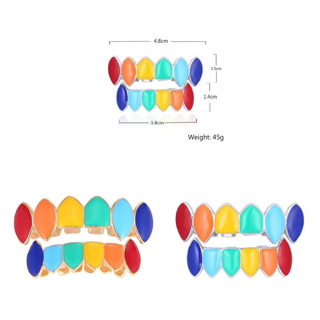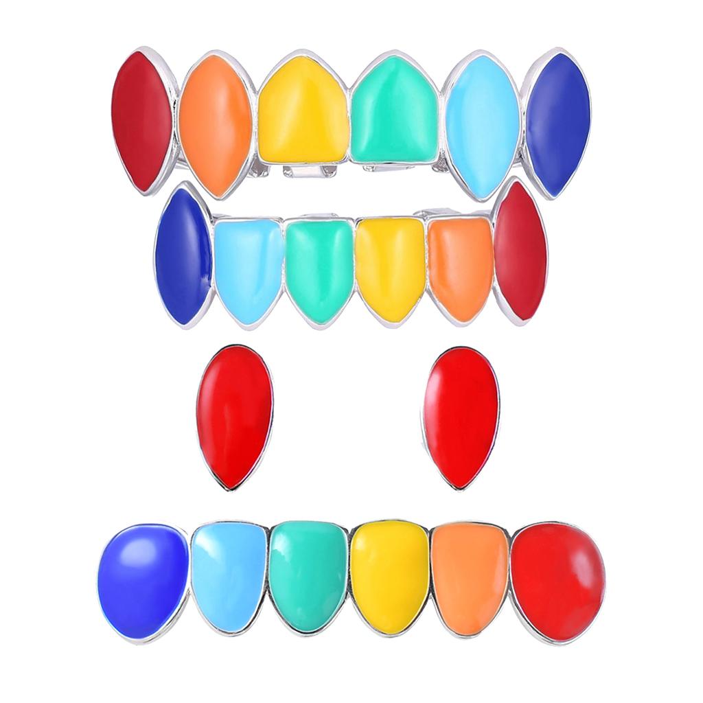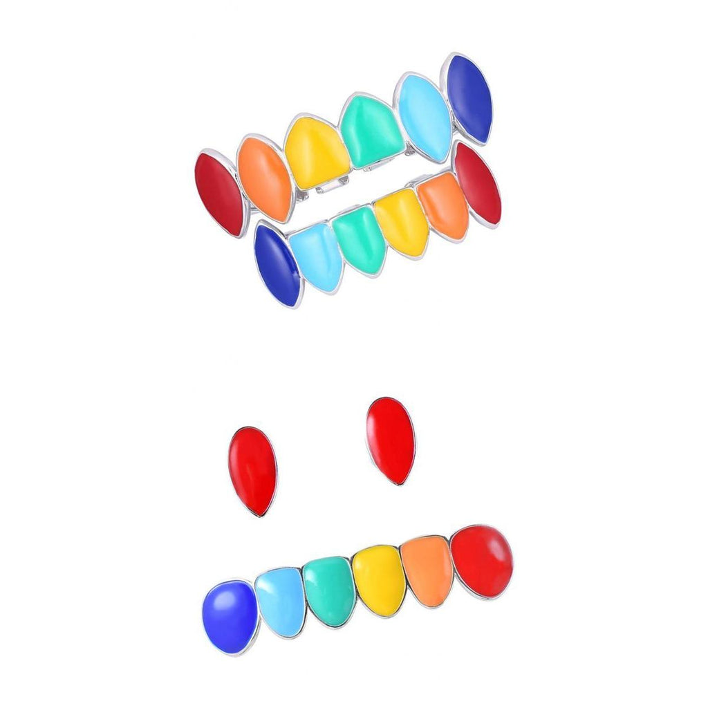 Maxbell 2 Sets Colorful Hip Hop Fang Teeth Grills Hollowen Clown Mouth Jewelry