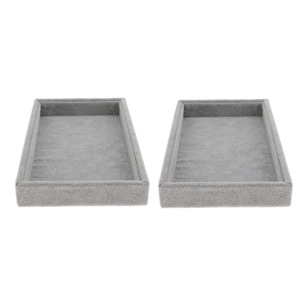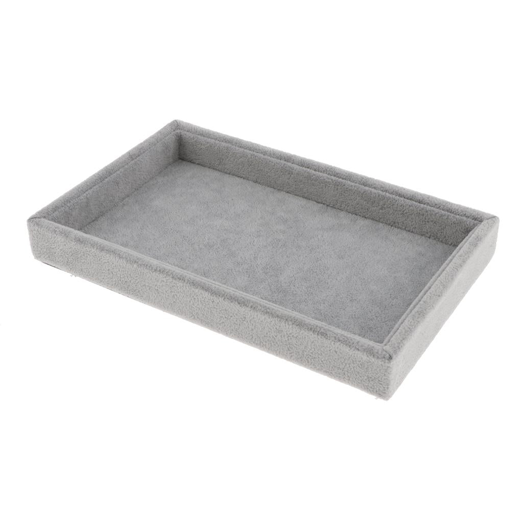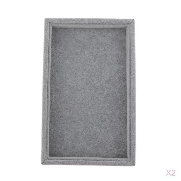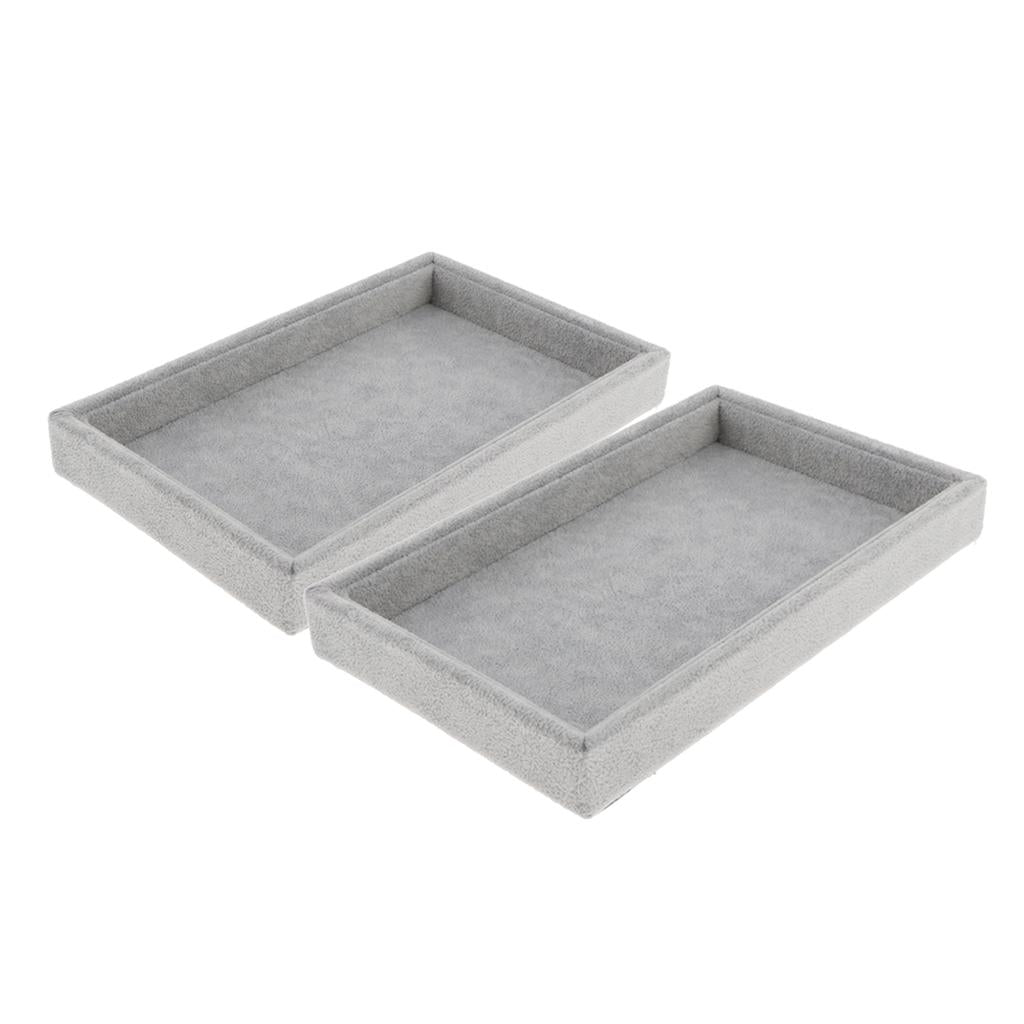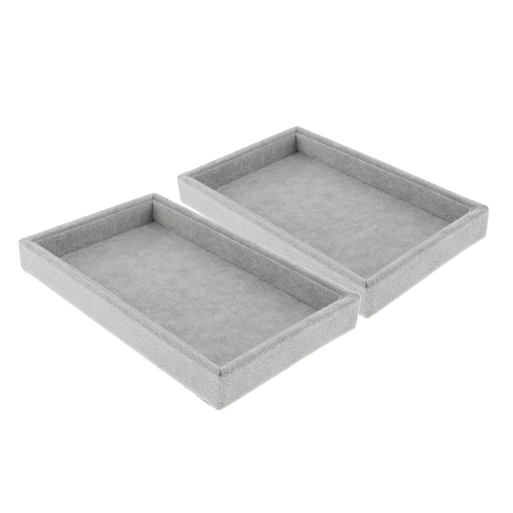 Maxbell 2x Elegant Velvet Stackable Jewelry Display Tray Necklace Organizer Gray