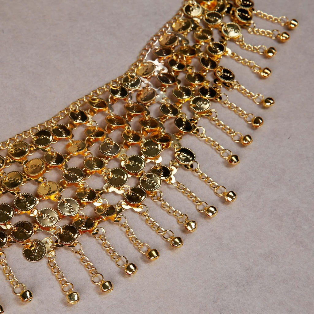 Design: Sequins and tassels design, adjustable, with Strong connection, not easy to fall, with bells pendant, the stage effect is better, It enhances every waist movement when dancing.