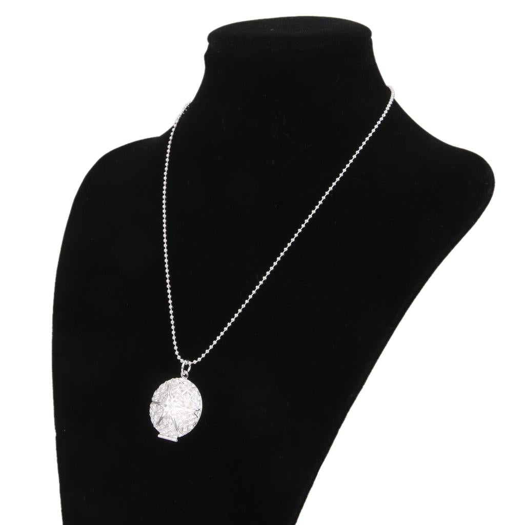 Maxbell 2xVintage 925 Silver Plated Hollow Round Locket Pendant Necklace Jewelry Gift