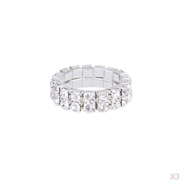 Maxbell 3 Stk. Elastic Silver Tone 2 Row Crystal Rhinestone Toe Ring Bridal Jewelry