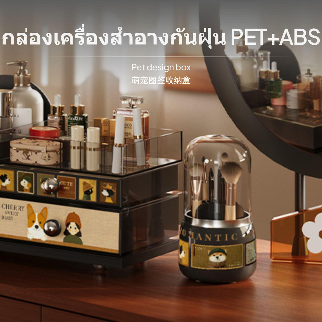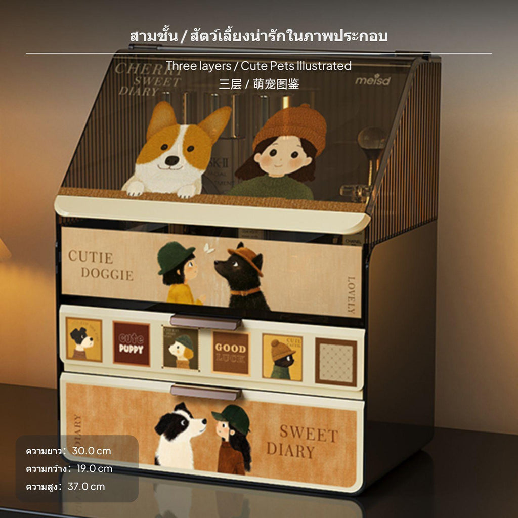 [Stylish Large Capacity Organizer] Efficiently organize makeup, jewelry, and brushes using this 3-tier storage box, perfect for your desktop or vanity table.[Thoughtful Compartment Design] Multi-level partitions, soft-lined drawers, and open top sections make storage for skincare bottles, lipsticks, and accessories neat and accessible.[Chic Decor with Cute designs] The elegant combination of vintage and modern design, featuring adorable pet illustrations, adds appeal and aesthetic to your room.[PET Material & Protective Features] Crafted from high-quality PET, this organizer is designed for durability and includes a transparent top cover for particle protection and easy visibility.[adaptable for Various Spaces] Perfect for bedrooms, dorms, bathroom counters, and office desktops, this organizer keeps your essentials in order while doubling as a decorative accent.