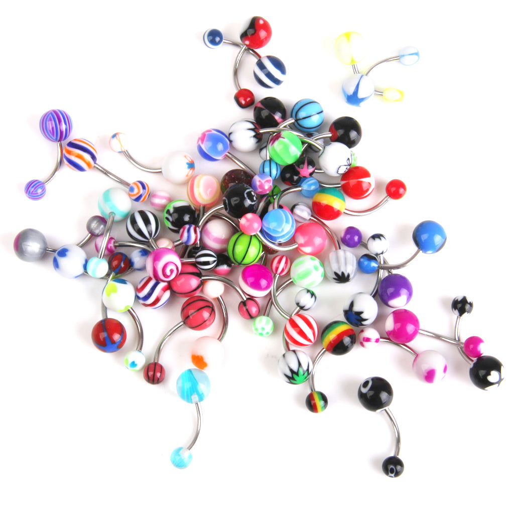 Maxbell 50pcs Stainless Ball Bar Studs Button Ring Navel Ring Body Piercing Jewelry