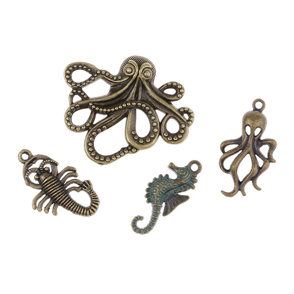 Maxbell 60 Pieces Bronze Alloy Sea Animals Shape Charms Pendants for Jewelry Making