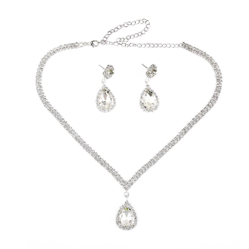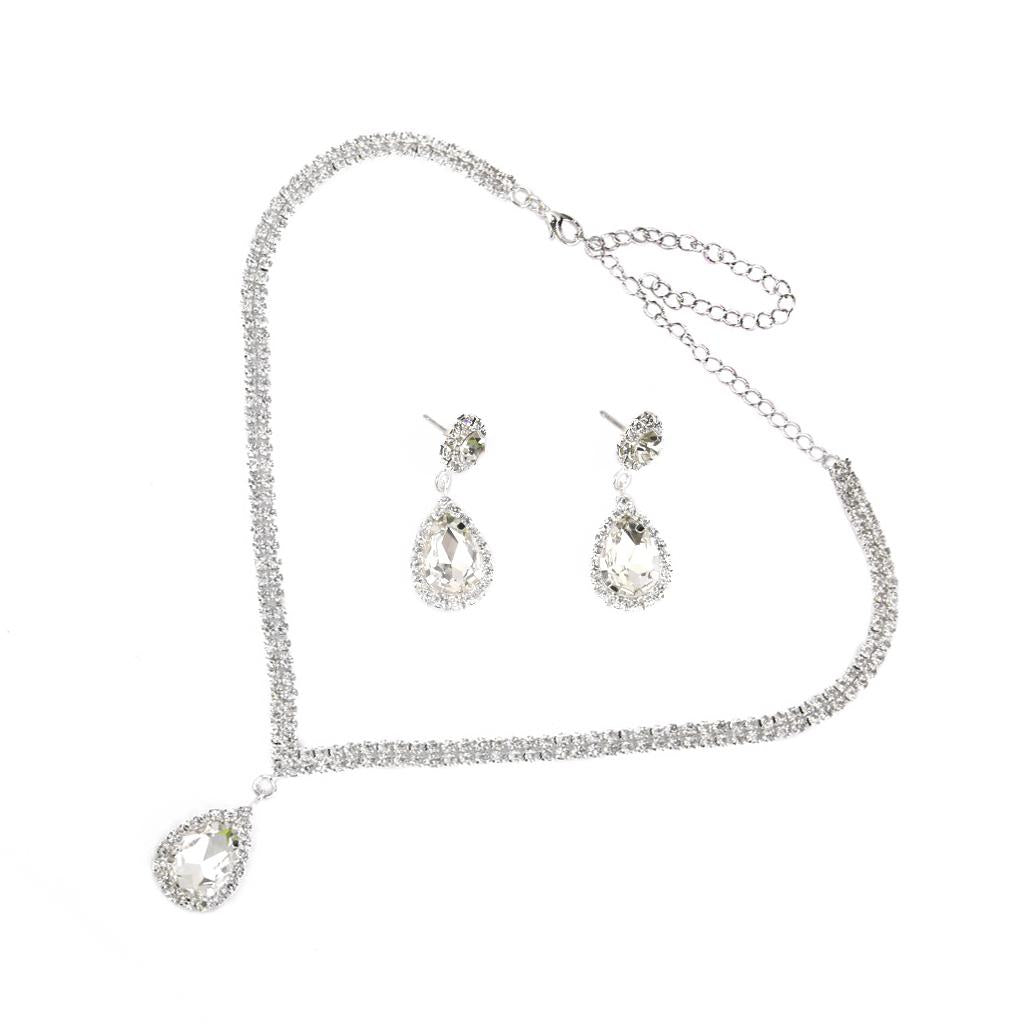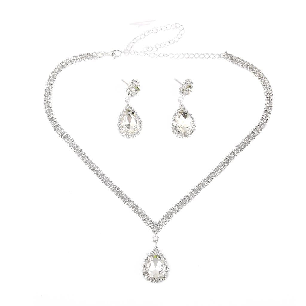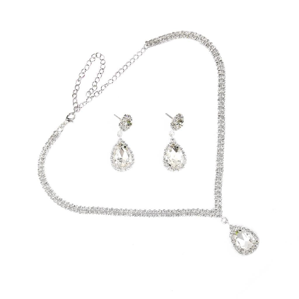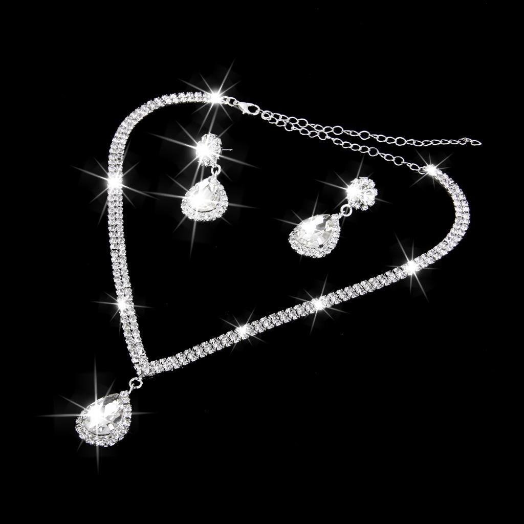 Maxbell 7xTeardrop Rhinestone Jewelry Necklace Earring Set Wedding Bridal Party