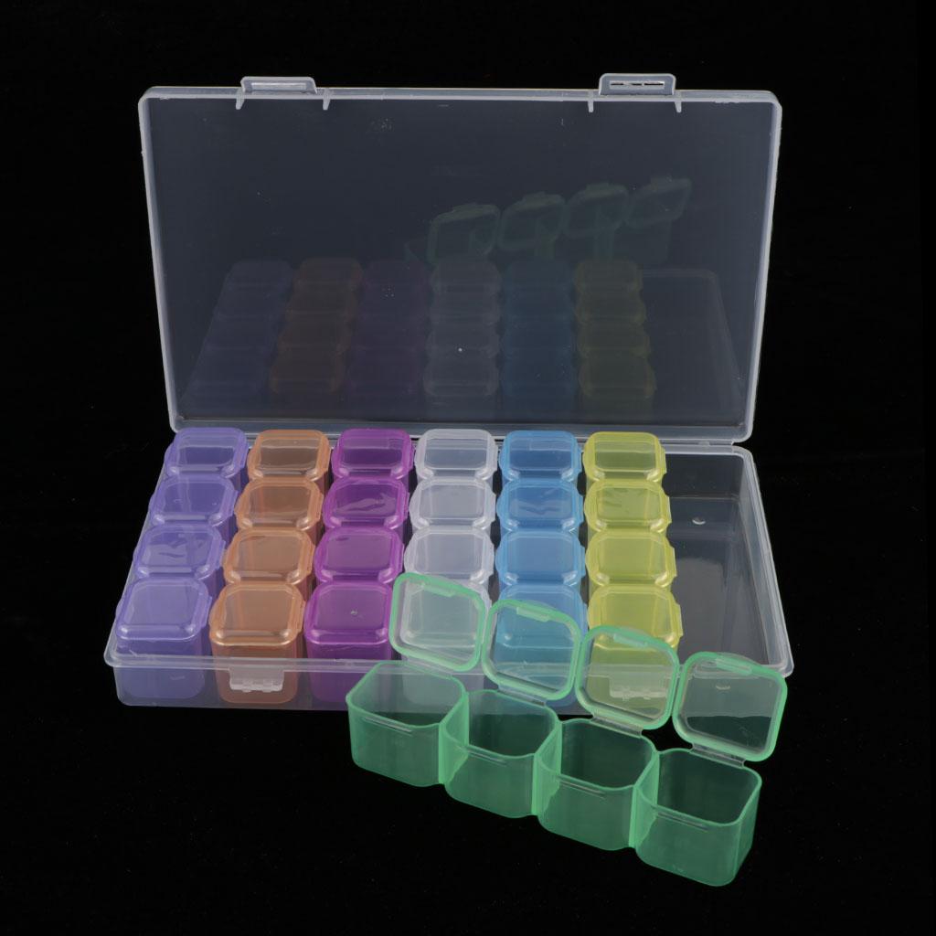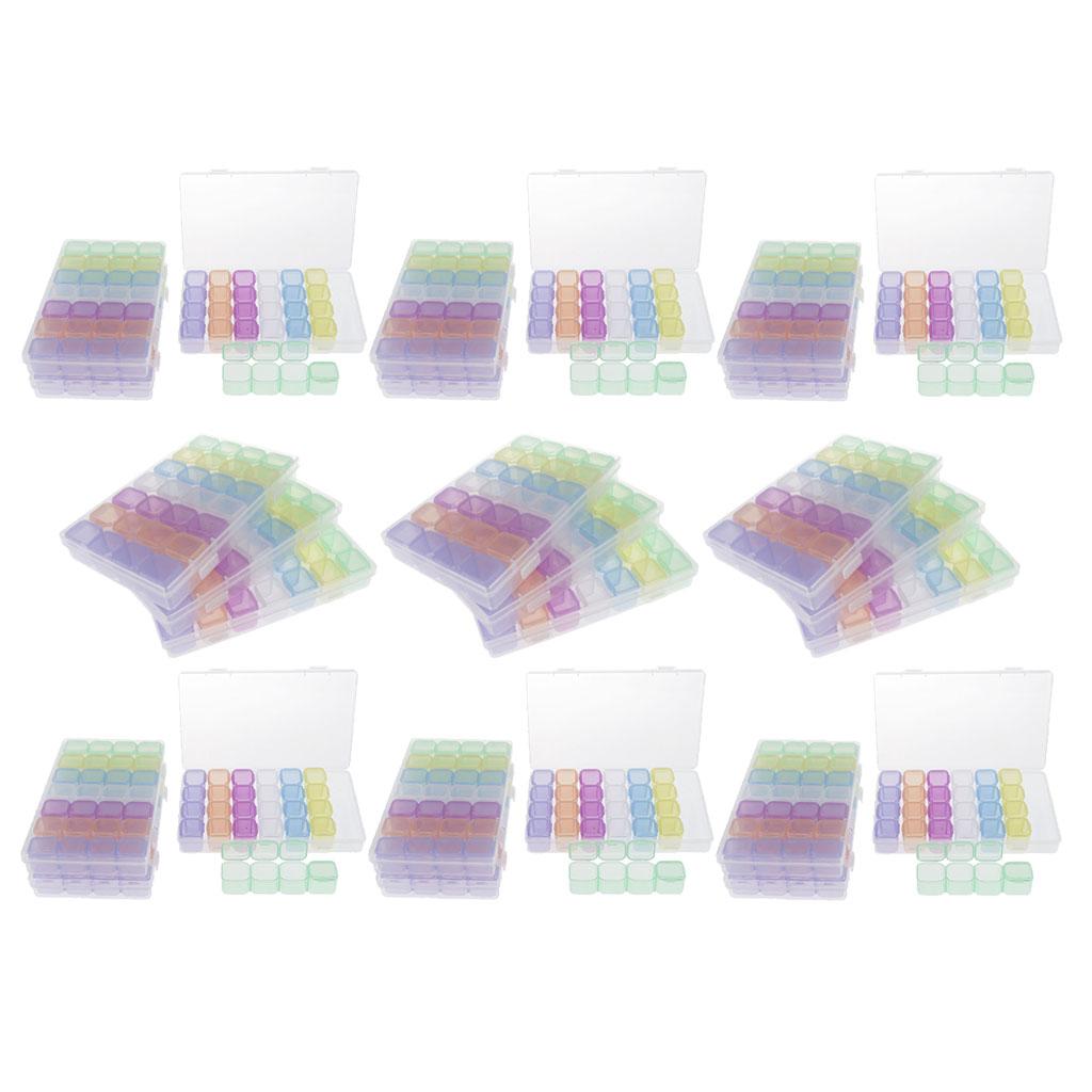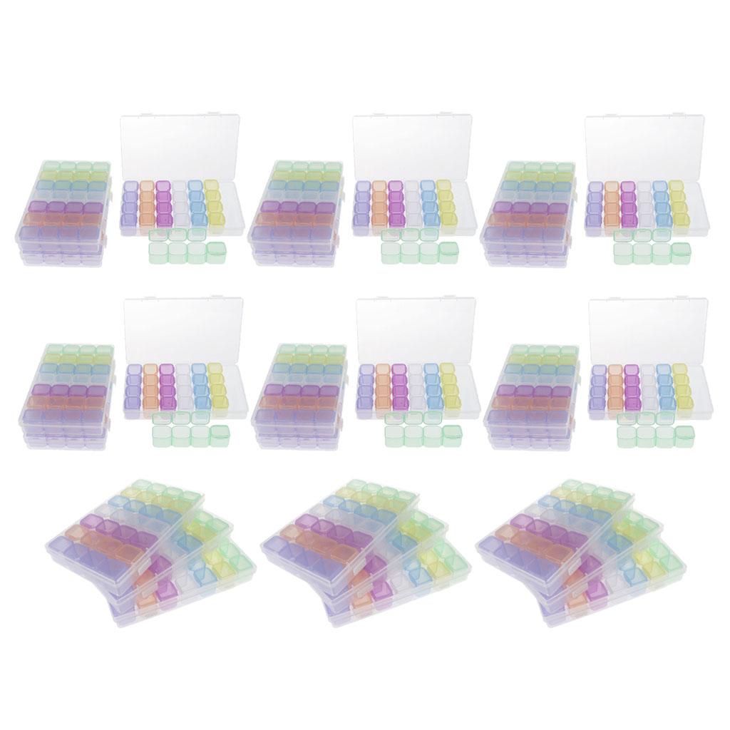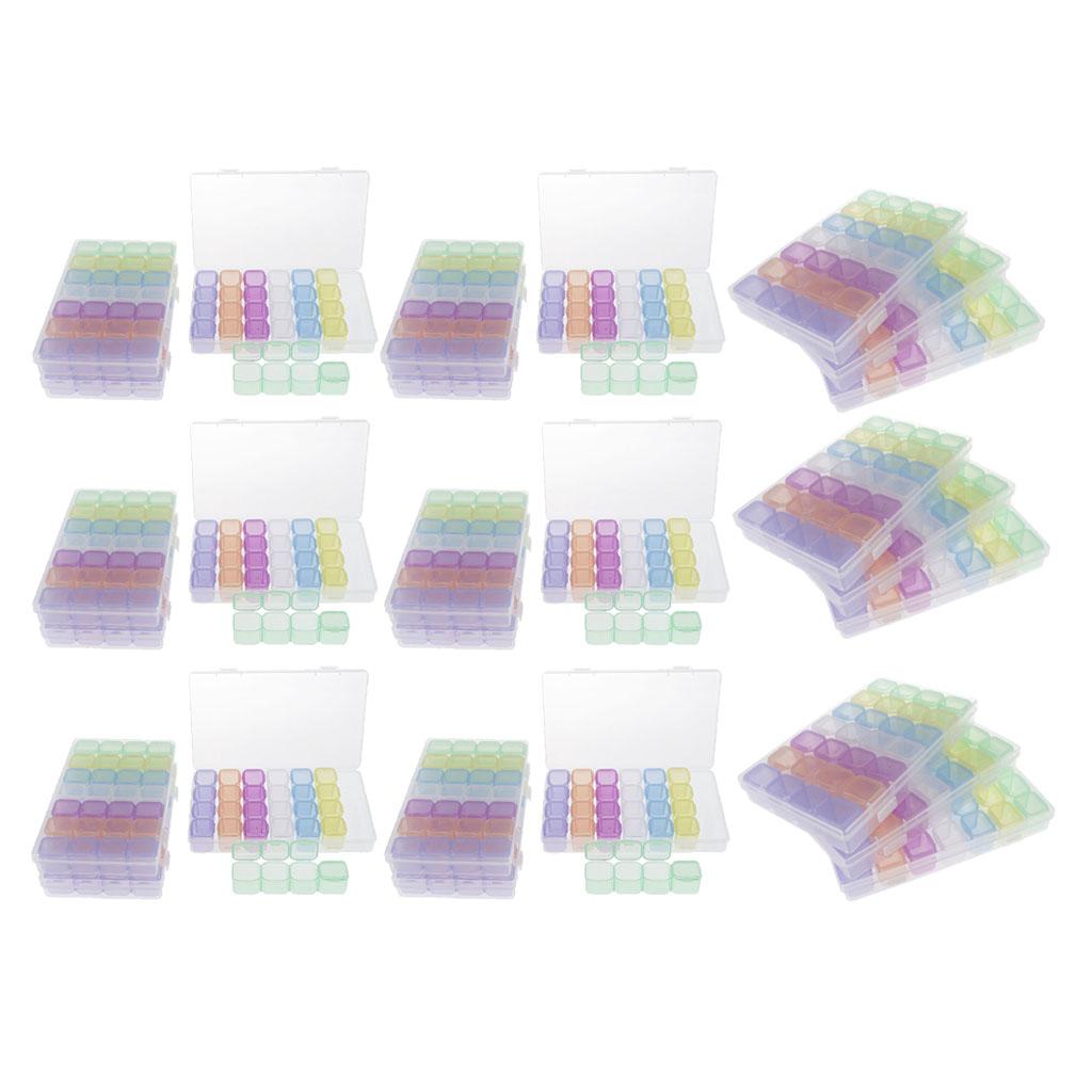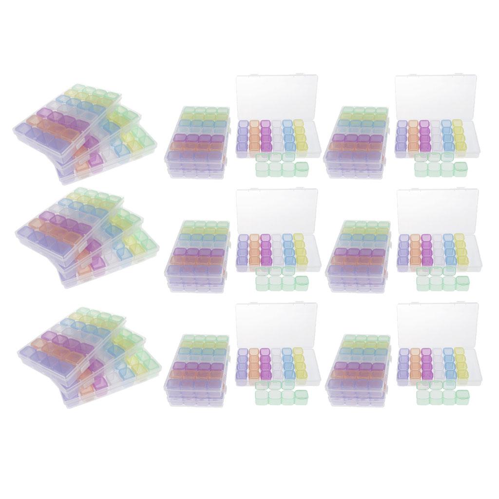 Maxbell 9 Pieces Clear Storage Box with 28 Grids Jewelry Nail Art Beads Mini Cases