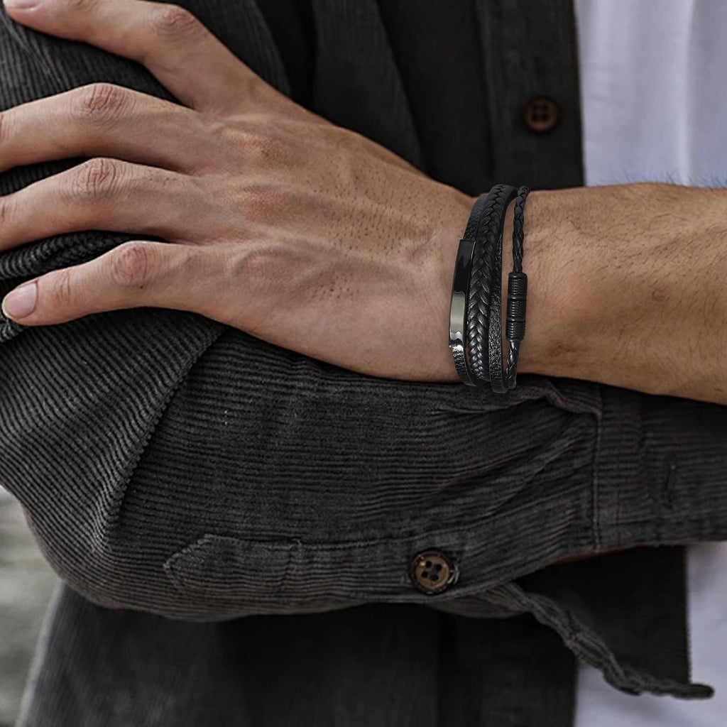 - 【Premium Construction】: Multilayer leather bracelet crafted from multi layer genuine leather for a rugged, masculine appearance that expresses distinctive personal