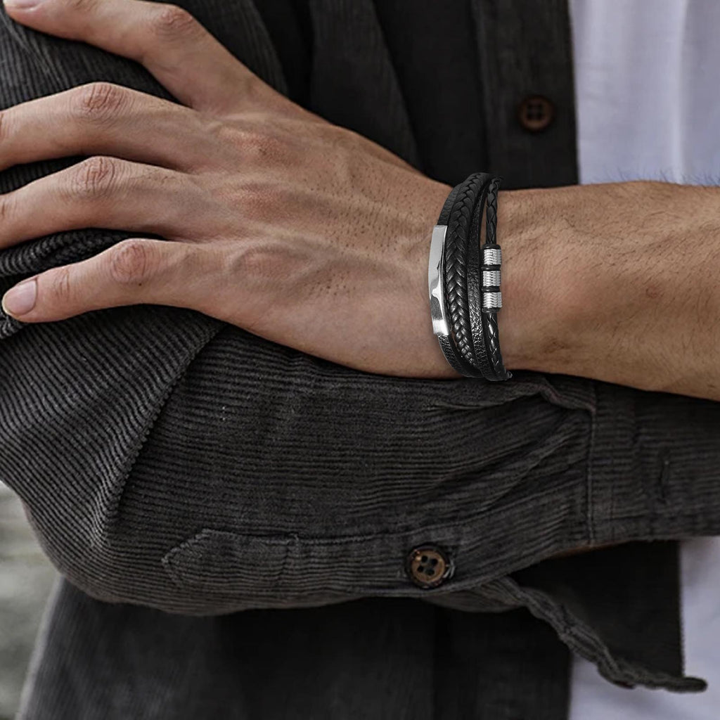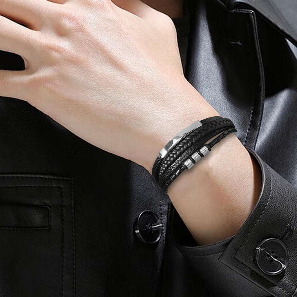 - 【Premium Construction】: Multilayer leather bracelet crafted from multi layer genuine leather for a rugged, masculine appearance that expresses distinctive personal