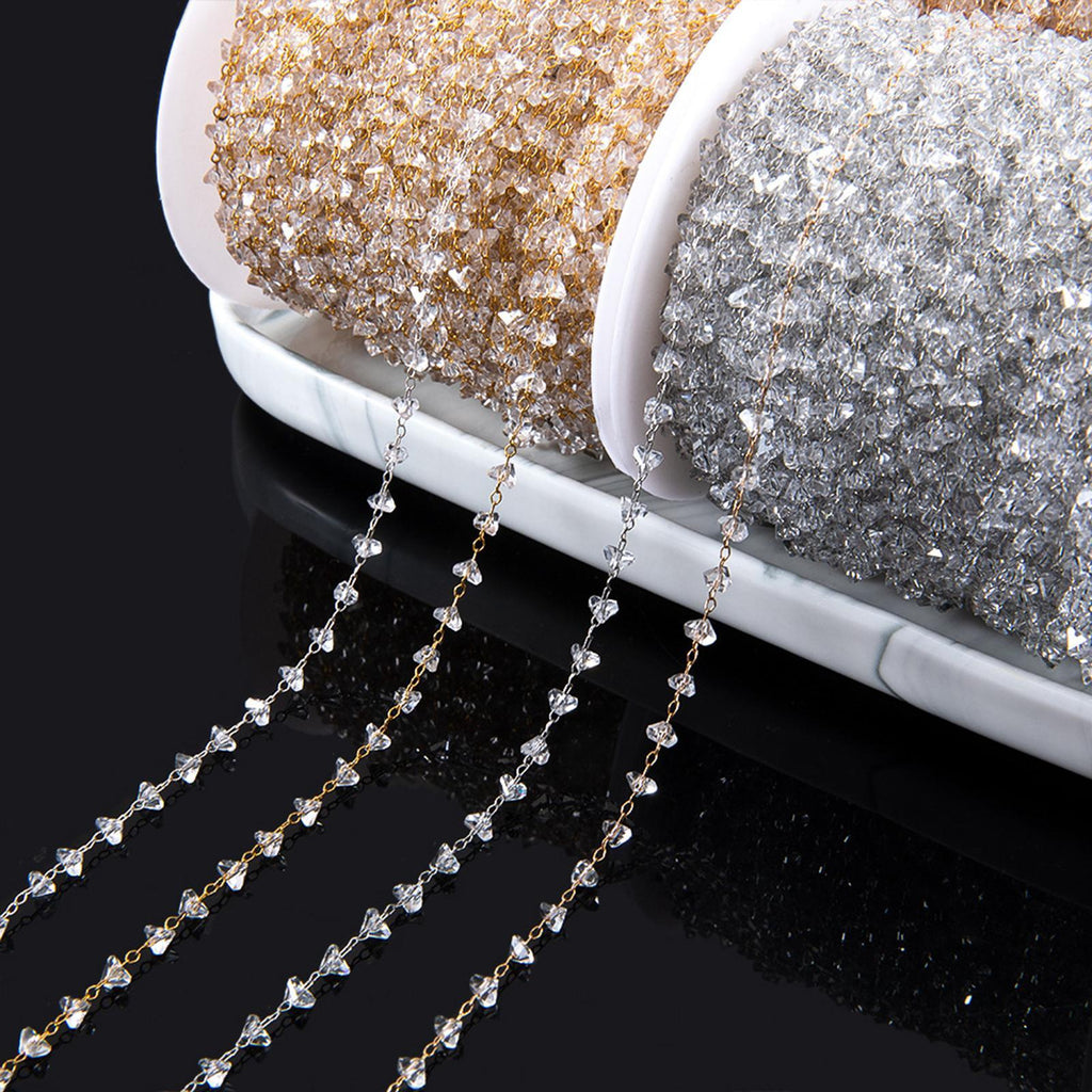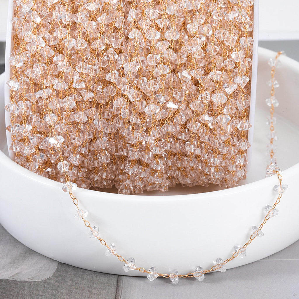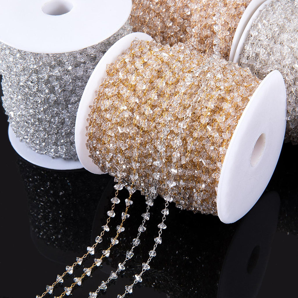 Maxbell Beads Chain Clear Beaded Trim Jewelry Chain for Bracelet DIY Crafts Ornament