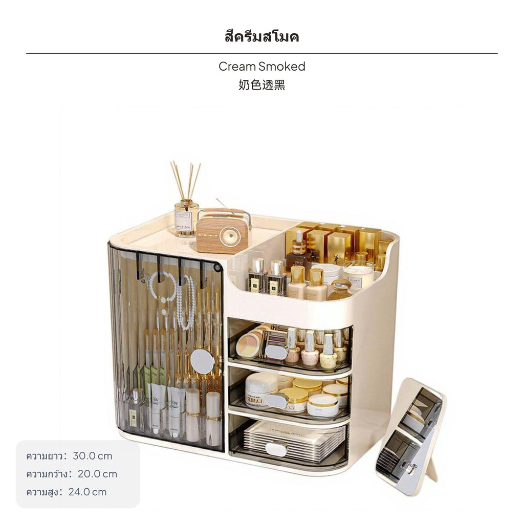 Desktop Cosmetic Organizer Box with Mirror, Multi-Functional Dustproof Makeup Storage Holder, Large Capacity for Vanity, Skincare, and Jewelry Cream Smoked