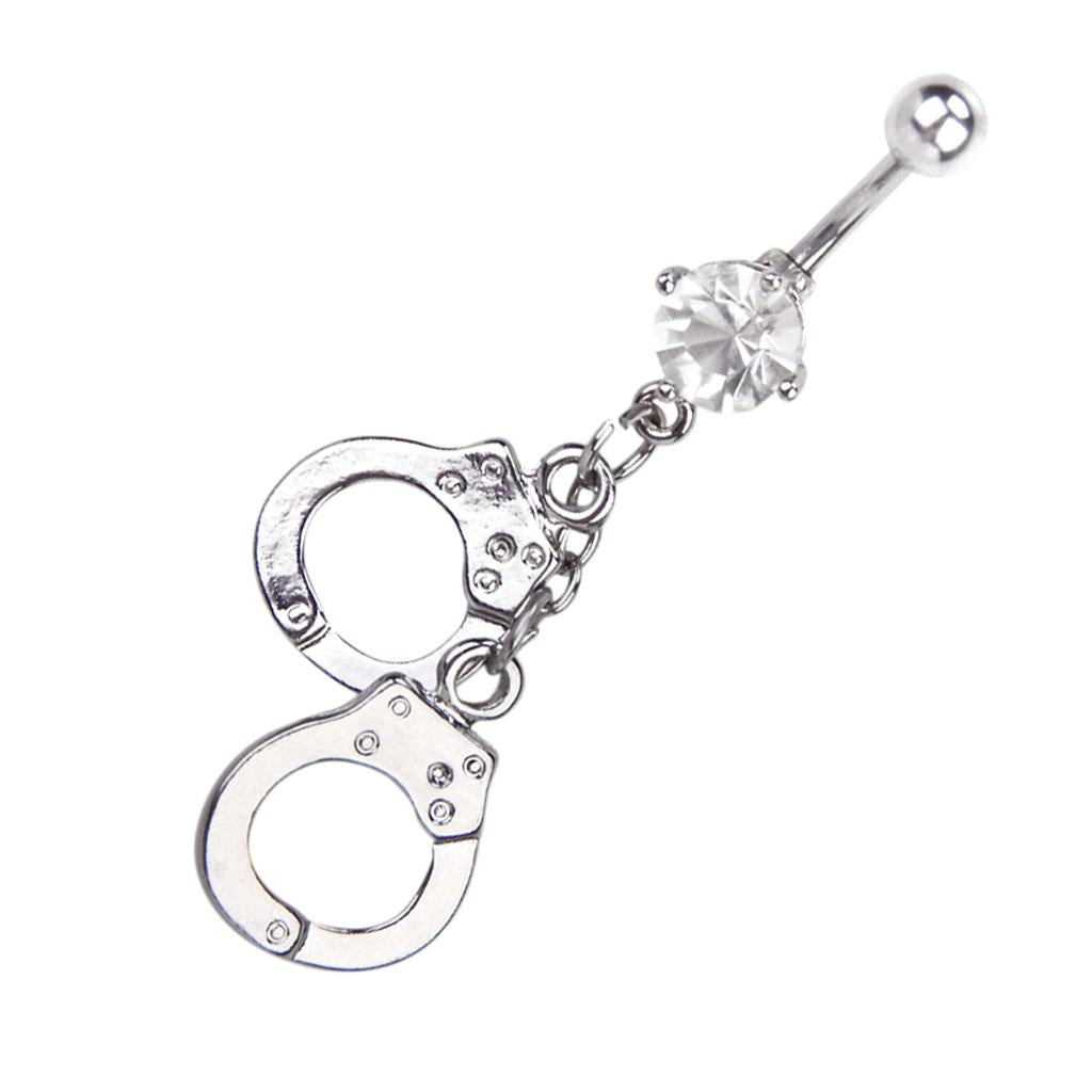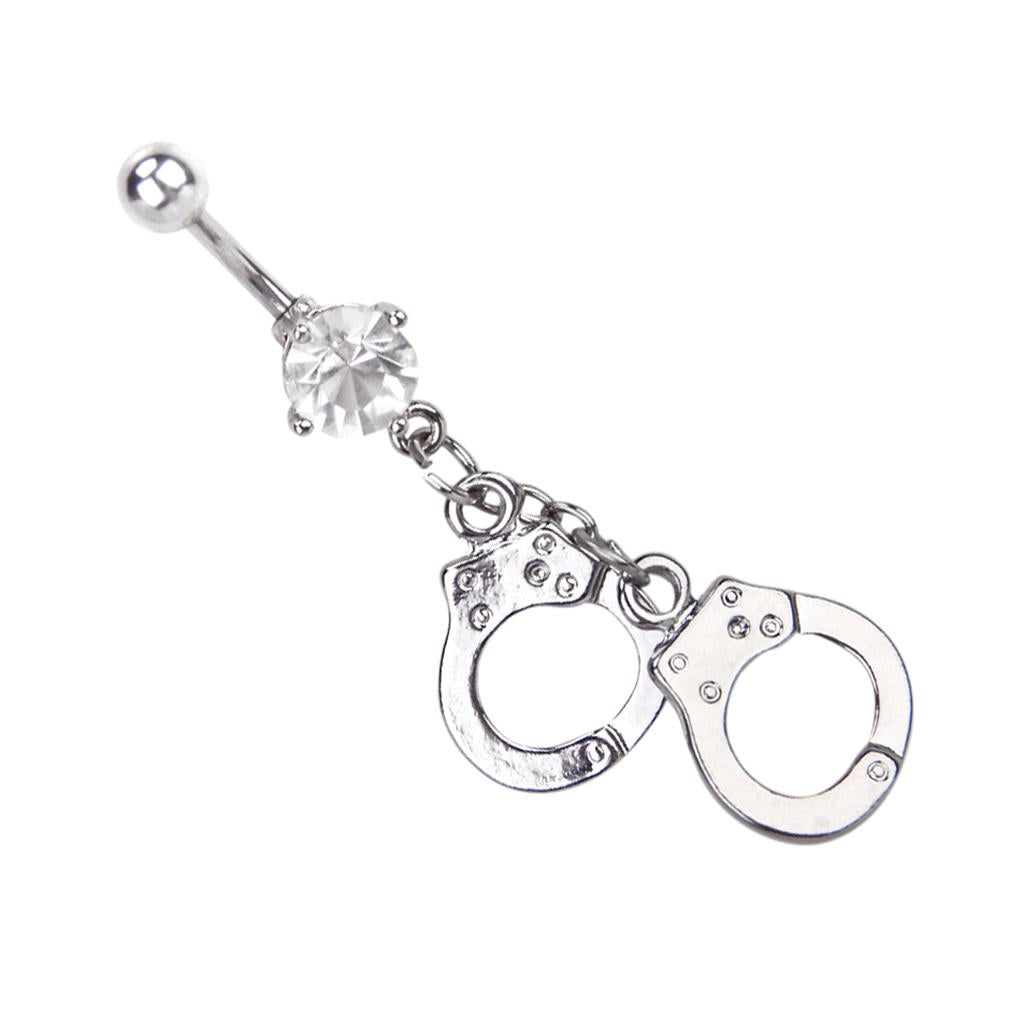 Maxbell Double Cuffs Crystal Barbell Dangle Navel Belly Ring Piercing Jewelry