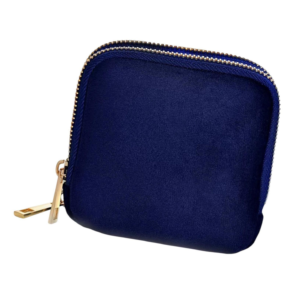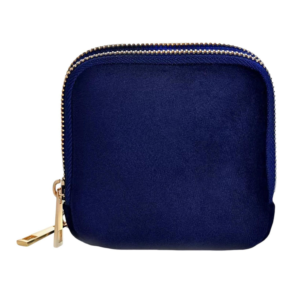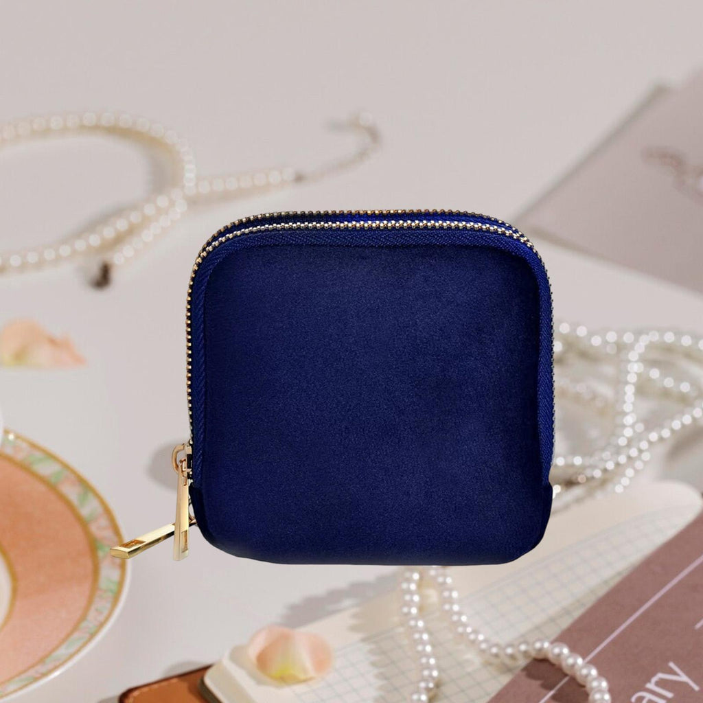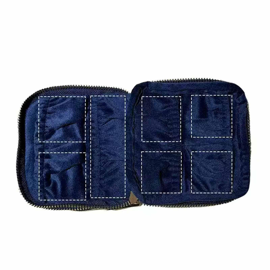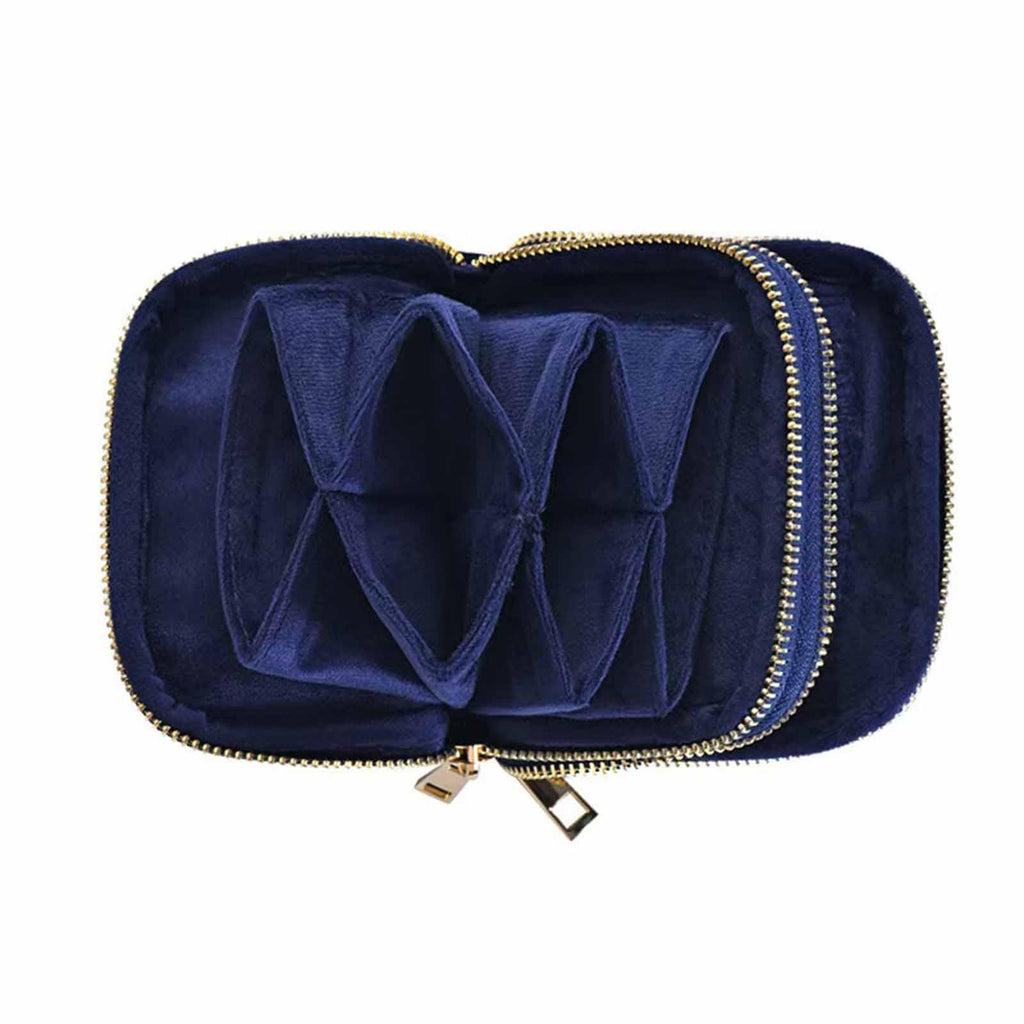 Double Layer Pouch Storage Bag Mom Wife Small Travel Jewelry Case Organizer Dark Blue