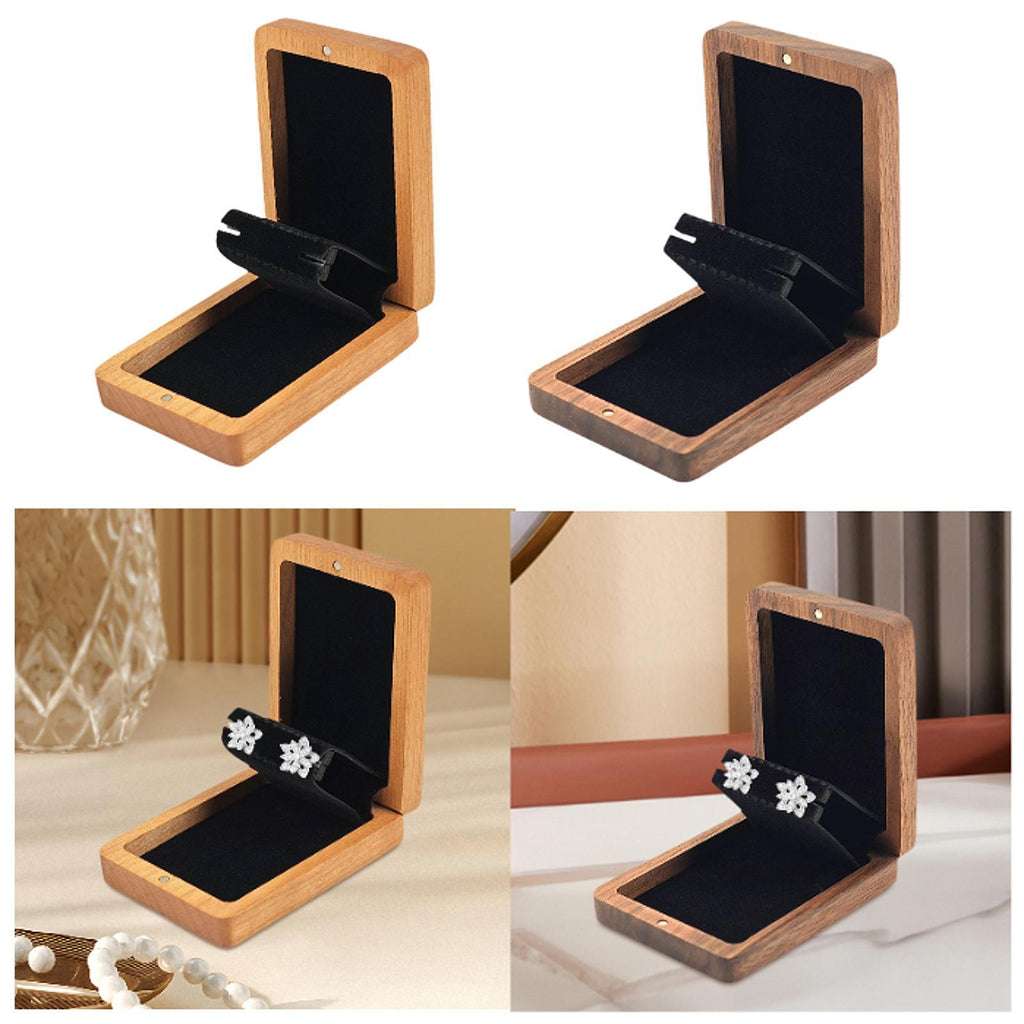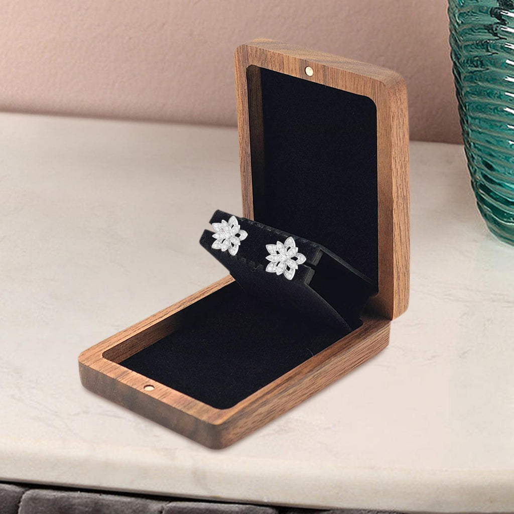 Maxbell Earring Stud Box Small Jewelry Organizer for Anniversary Engagement Birthday Walnut