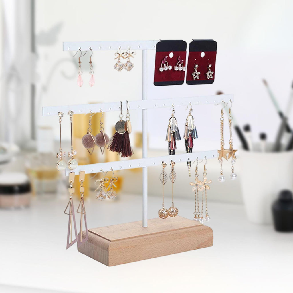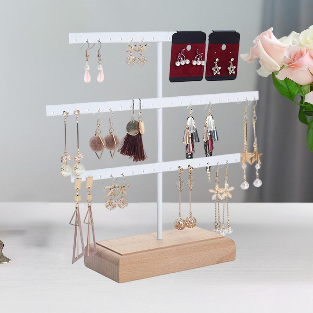 Maxbell Earrings Organizer Stable Wooden Base Jewelry Storage Rack Hanging Organizer White