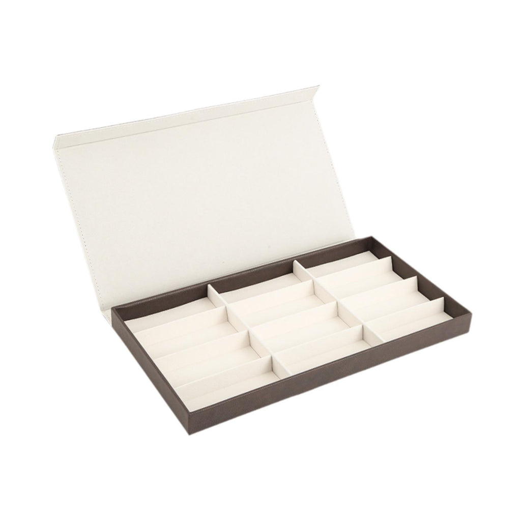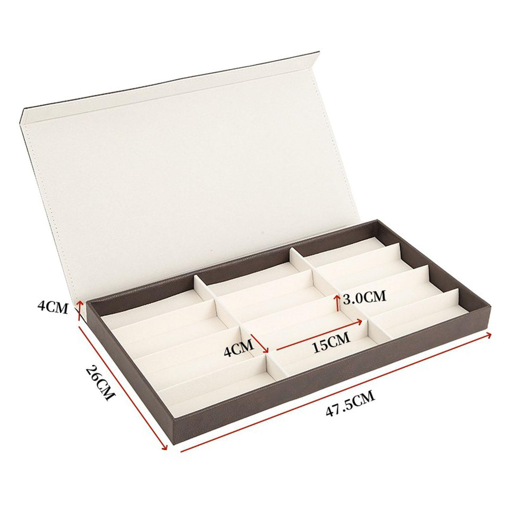 【Compact and Convenient】: Designed for versatility in placement, this compact box fits easily on dressers, cabinets or in drawers. It's also ideal for travel or business trips due to its portable size (47.5L x 26W x 4H cm). Made from pu leather with a plush fabric interior for added elegance and protection