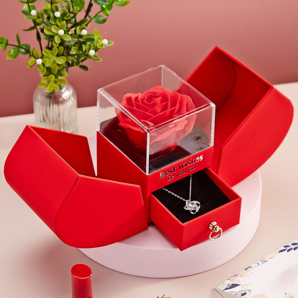 【Complete Package】: The package includes an authentic soap flower and a four leaf clover necklace, all elegantly presented in the box