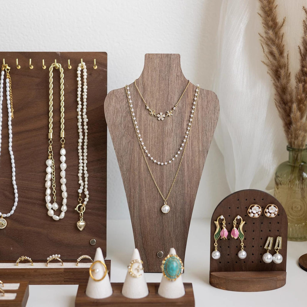 【Wide Applications】: This trendy wooden jewelry organizer board is widely suitable for dresser, jewellery shop, stores, shopping mall or at a market stall, etc