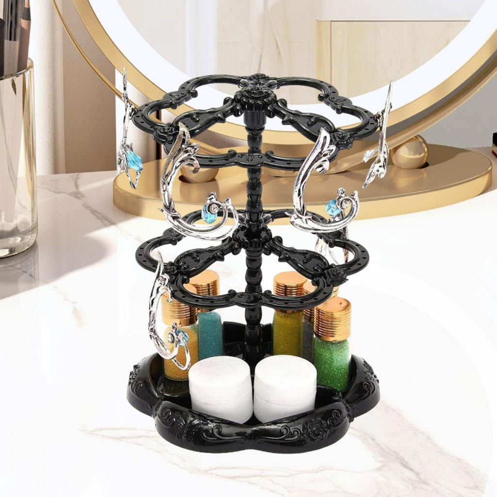 【Innovative Design】: This earring organizer features a 360 degree rotating design, allowing you to easily access your jewelry. The adjustable earring holder can be moved up and down to create more space, while the sturdy base can be used to store rings, lipsticks and other small items