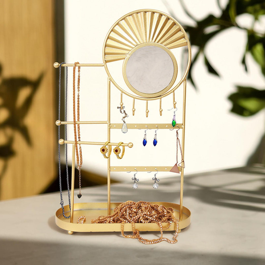 【Stable Construction】: Built with a sturdy iron frame and a stable wooden base to ensure the Jewelry Holder remains stable on your tabletop