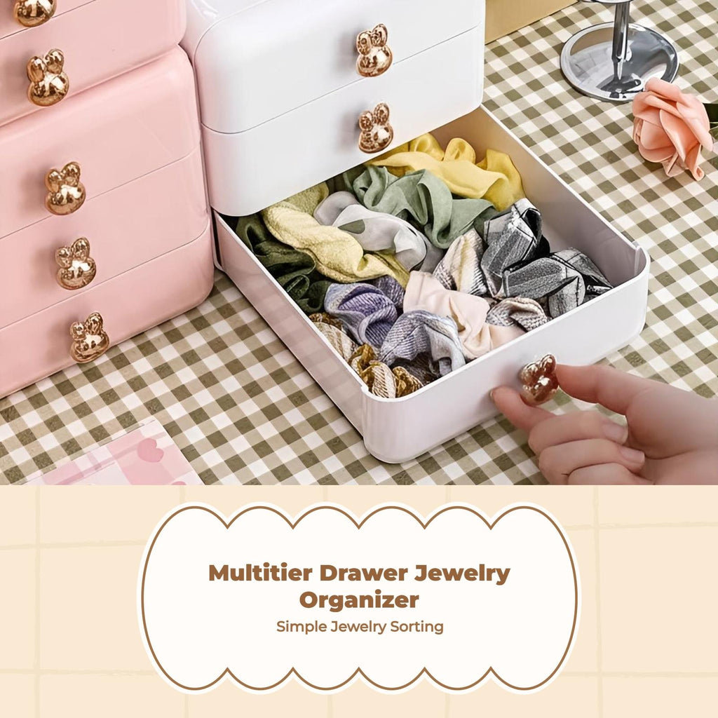 【adaptable Jewelry Organizer for Efficient Storage】This multitier drawer jewelry organizer features adjustable compartments, making it perfect for organizing earrings, necklaces, bracelets, and hair accessories on your dressing table or office desk.【High-Quality and sturdy Material】Crafted from this storage box offers sturdy protection for your jewelry and accessories, ensuring long use and dependable dustproof performance.【Space-Saving Multi-Compartment Design】The stackable trays and removable dividers maximize storage capacity, allowing you to customize the layout for different items and keep your space tidy.【Suitable for Multiple Scenes】Perfect for home, dormitory, office, bathroom, or closet, this organizer helps declutter your desktop and provides a practical solution for common storage needs.【Portable and Elegant Appearance】portable and lightweight, this jewelry storage box is easy to move and accommodates seamlessly into various environments, adding a glimpse of sophistication to your decor.