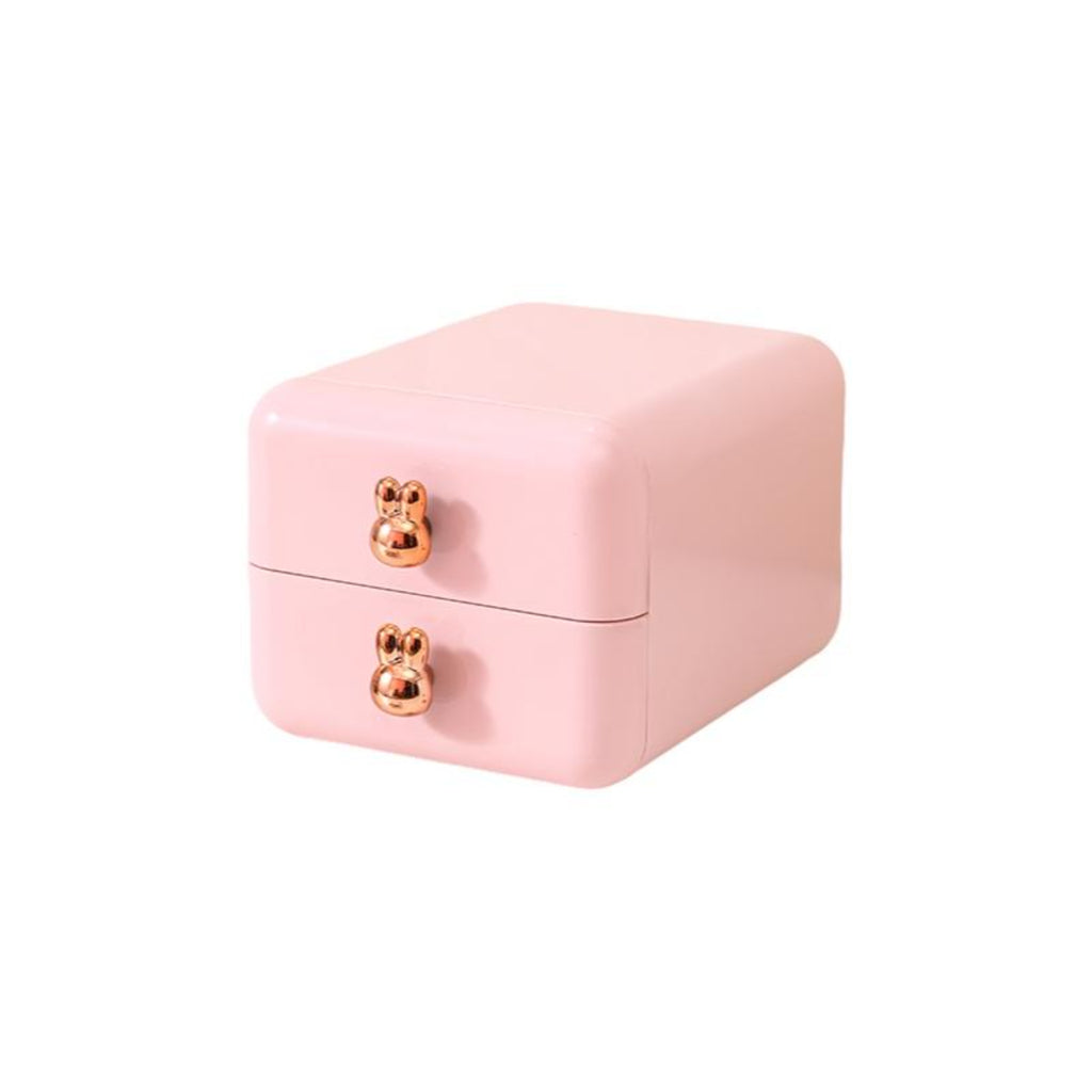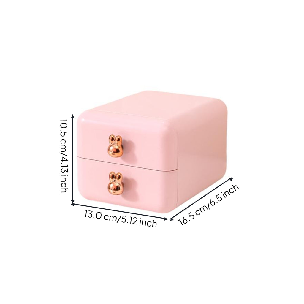 Jewelry Organizer, Multi-Tier Drawer Storage Box, Adjustable Compartments, Dustproof Pink Small 2-layer