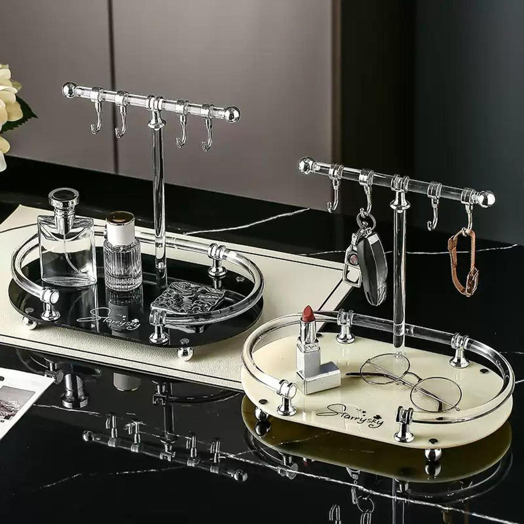 【Efficient Organization】: Equipped with hooks and a tray to neatly store keys, jewelry, or other small items, keeping your essentials easily accessible and clutter
