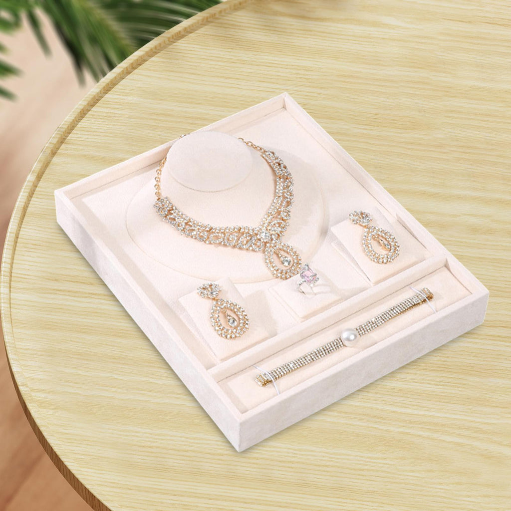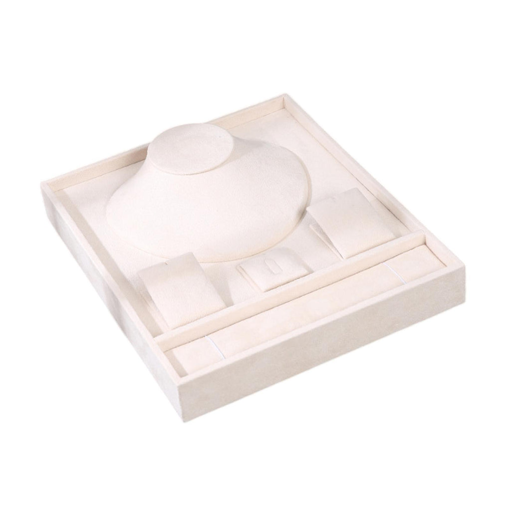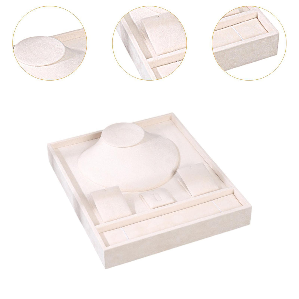 Maxbell Jewelry Organizer Tray for Necklace Rings Bracelet Earrings for Presentation Beige White
