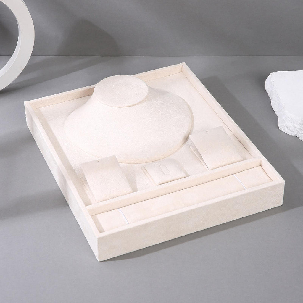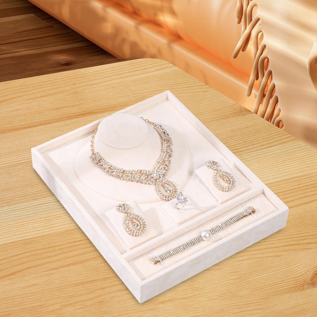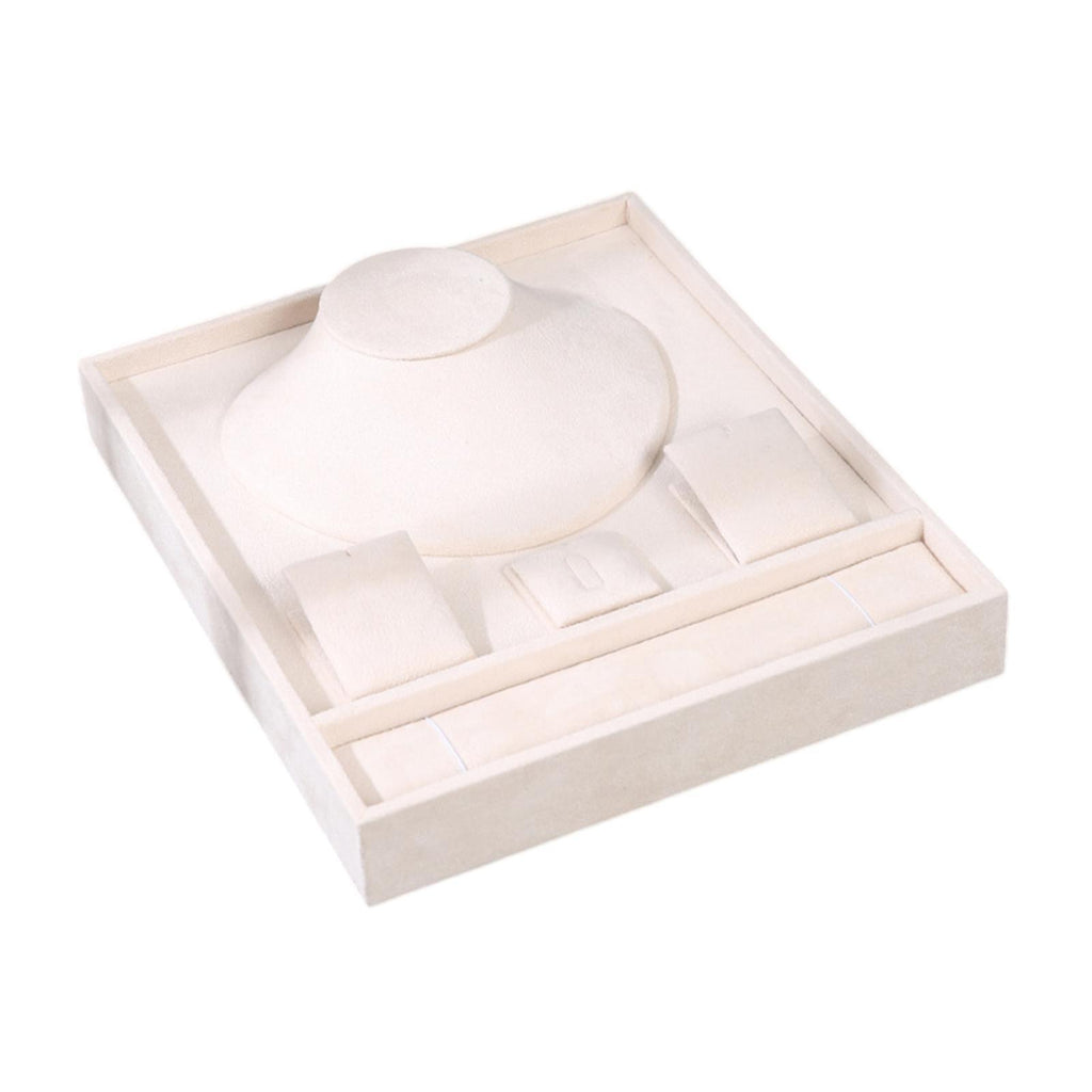 Maxbell Jewelry Organizer Tray for Necklace Rings Bracelet Earrings for Presentation Beige White