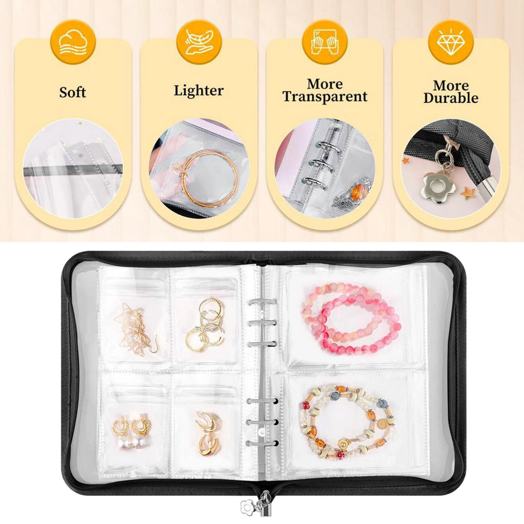 【Material】Jewelry Storage Book is made from sturdy PVC with a metal ring binder and 6-hole transparent pages for easy opening and closing, ensuring long term use