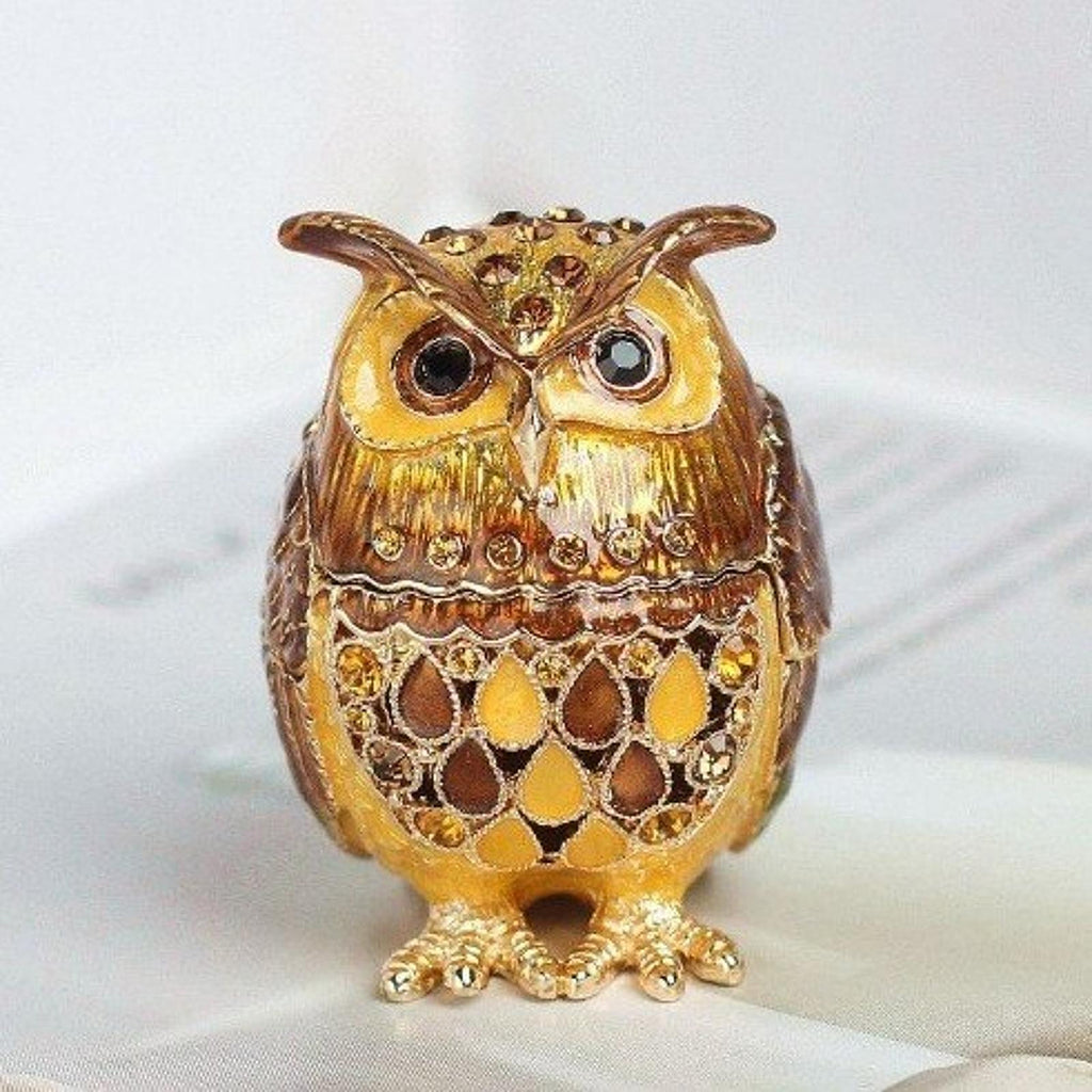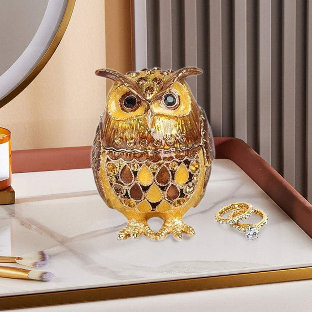 Maxbell Jewelry Trinket Box Owl Decor Storage Organizer for Necklaces Earrings Brown