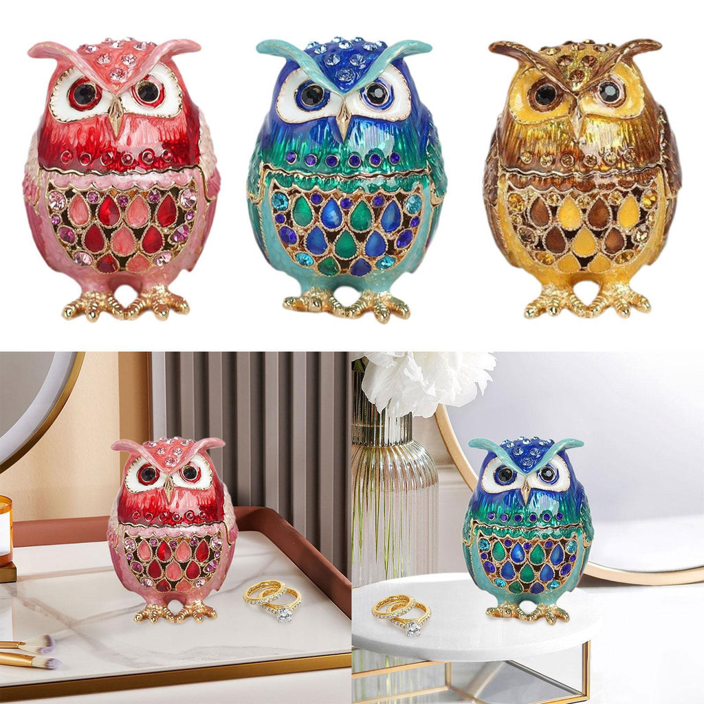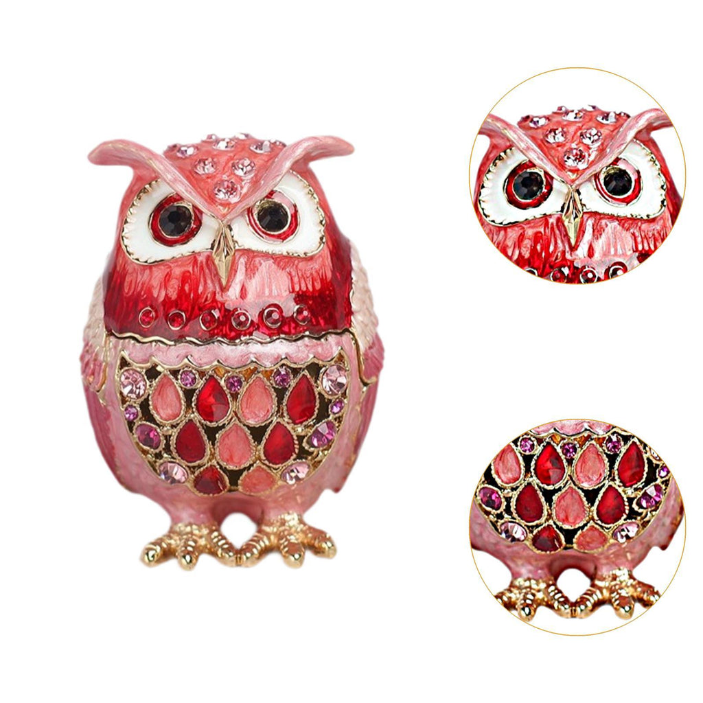 Maxbell Jewelry Trinket Box Owl Decor Storage Organizer for Necklaces Earrings Pink