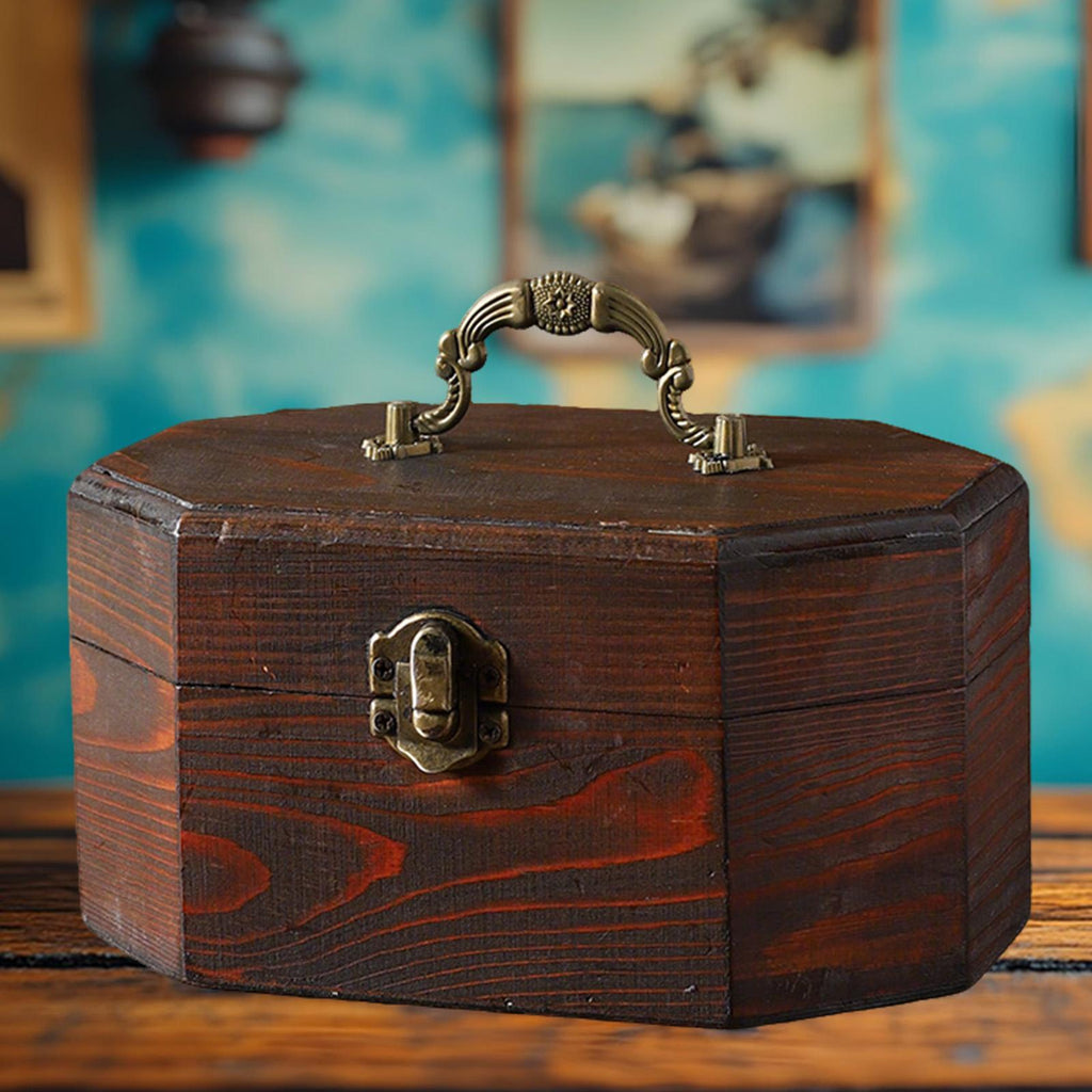 - 【Application】: A wooden treasure chest is ideal for storage of small collections, as decoration for a dresser, desk, home, display jewelry, wedding centerpieces, etc