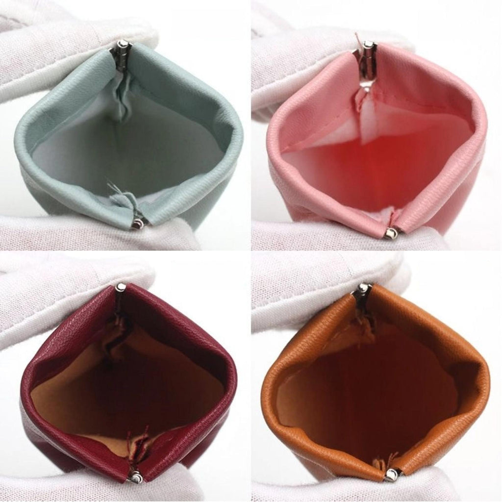Maxbell Mini Purse Jewelry Pouch Headphones Rings Holder PU Leather Makeup Bag Small Pink 12x15cm
