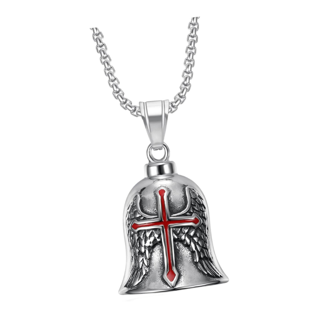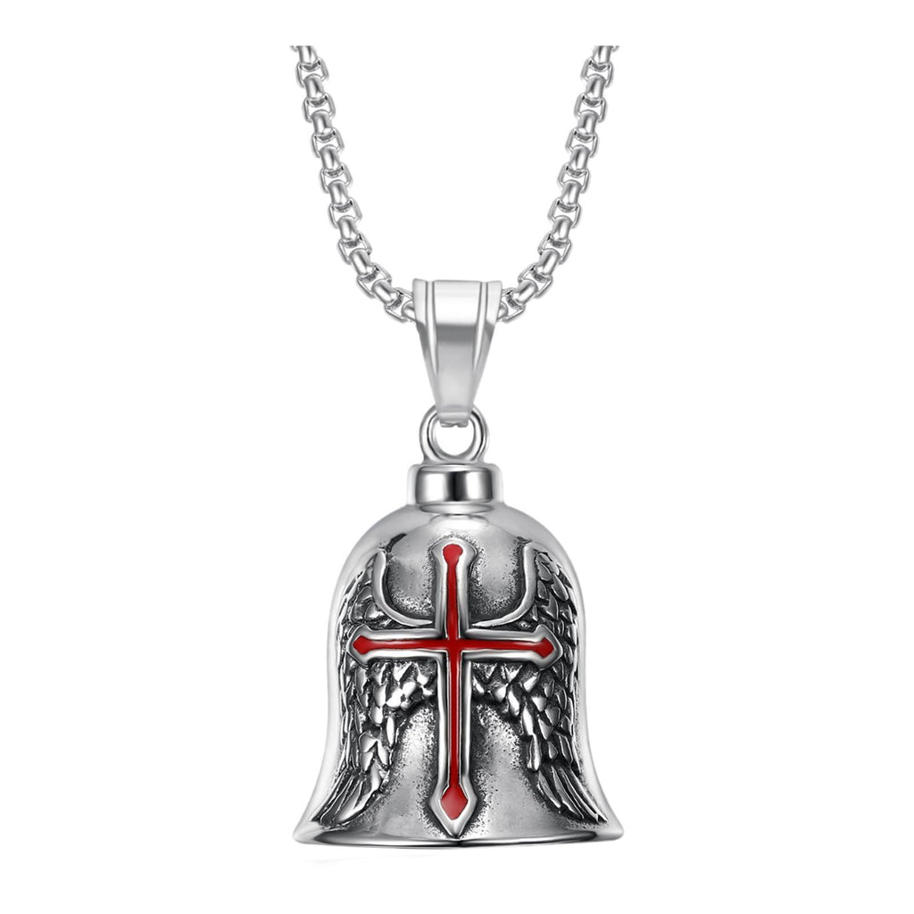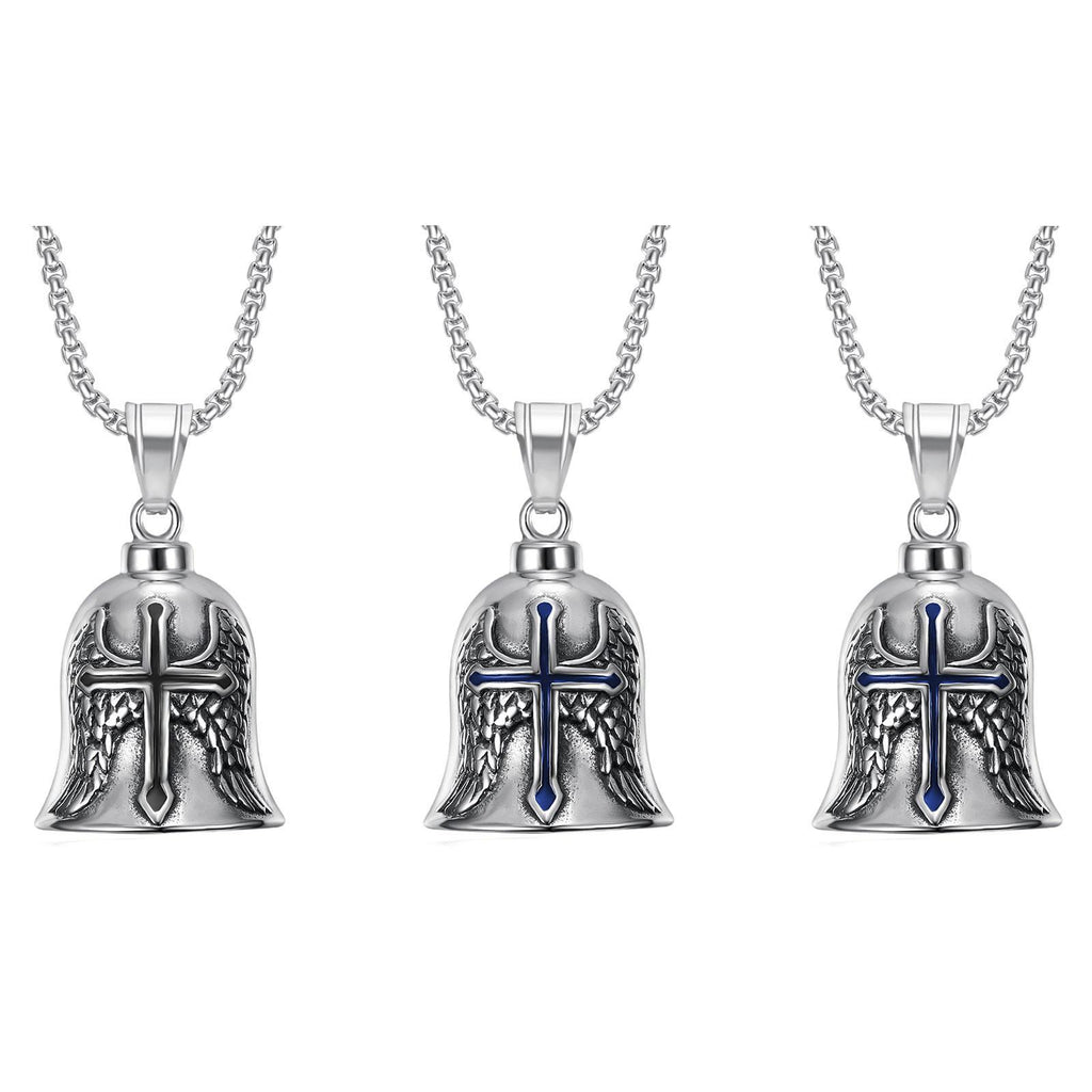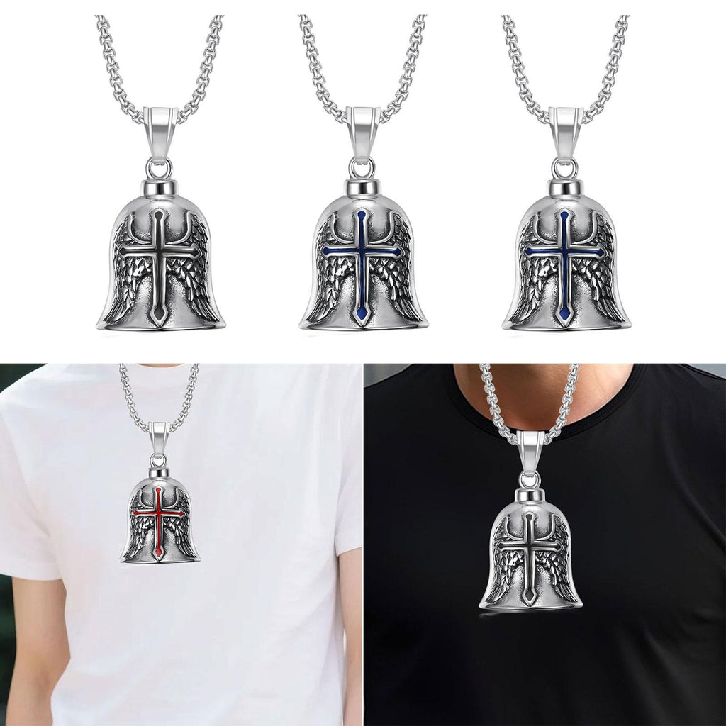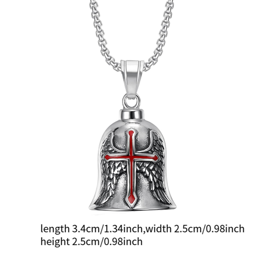 【Punk Design】: Features a cross pendant and a guardian bell for vintage biker aesthetic