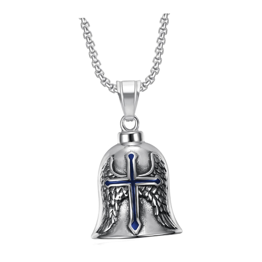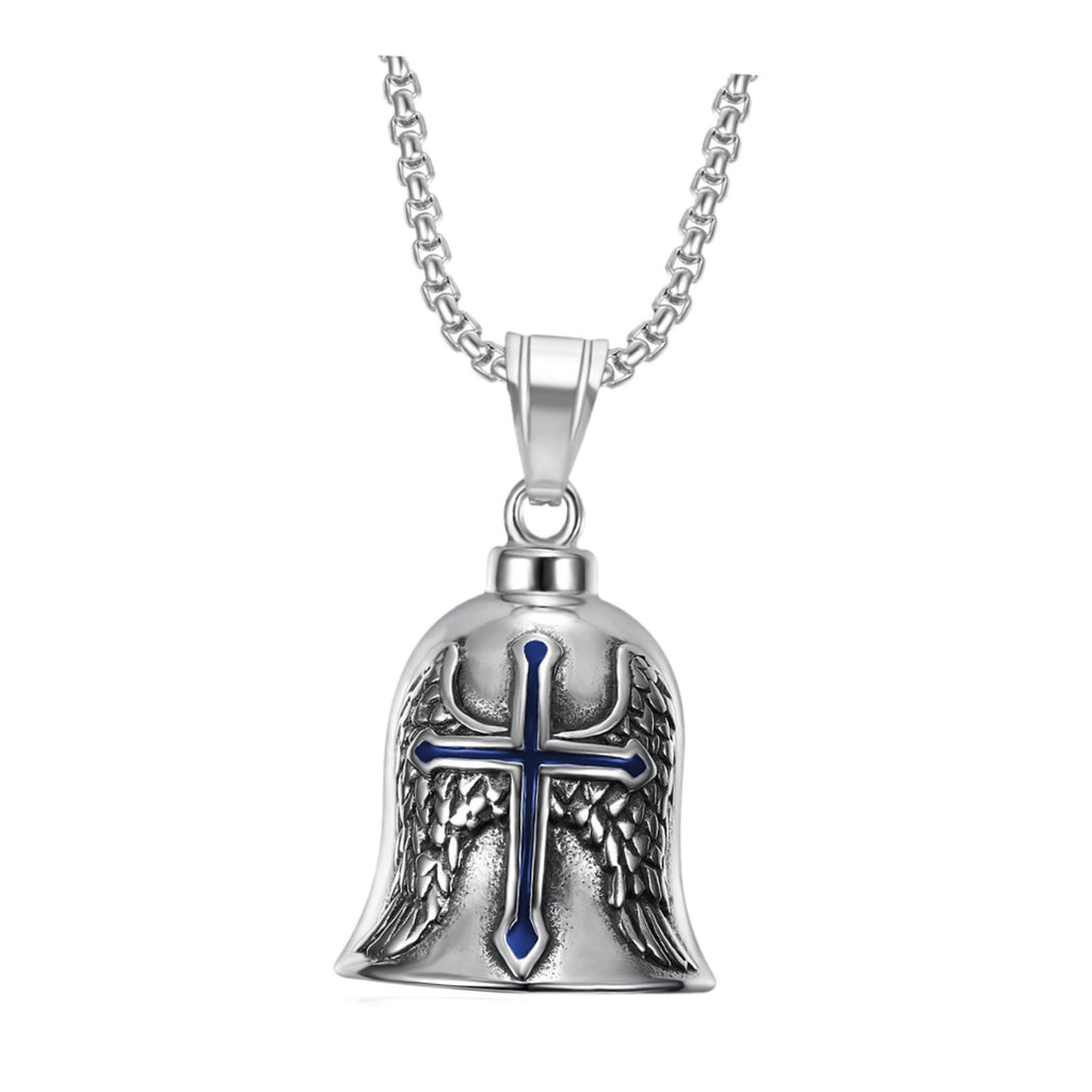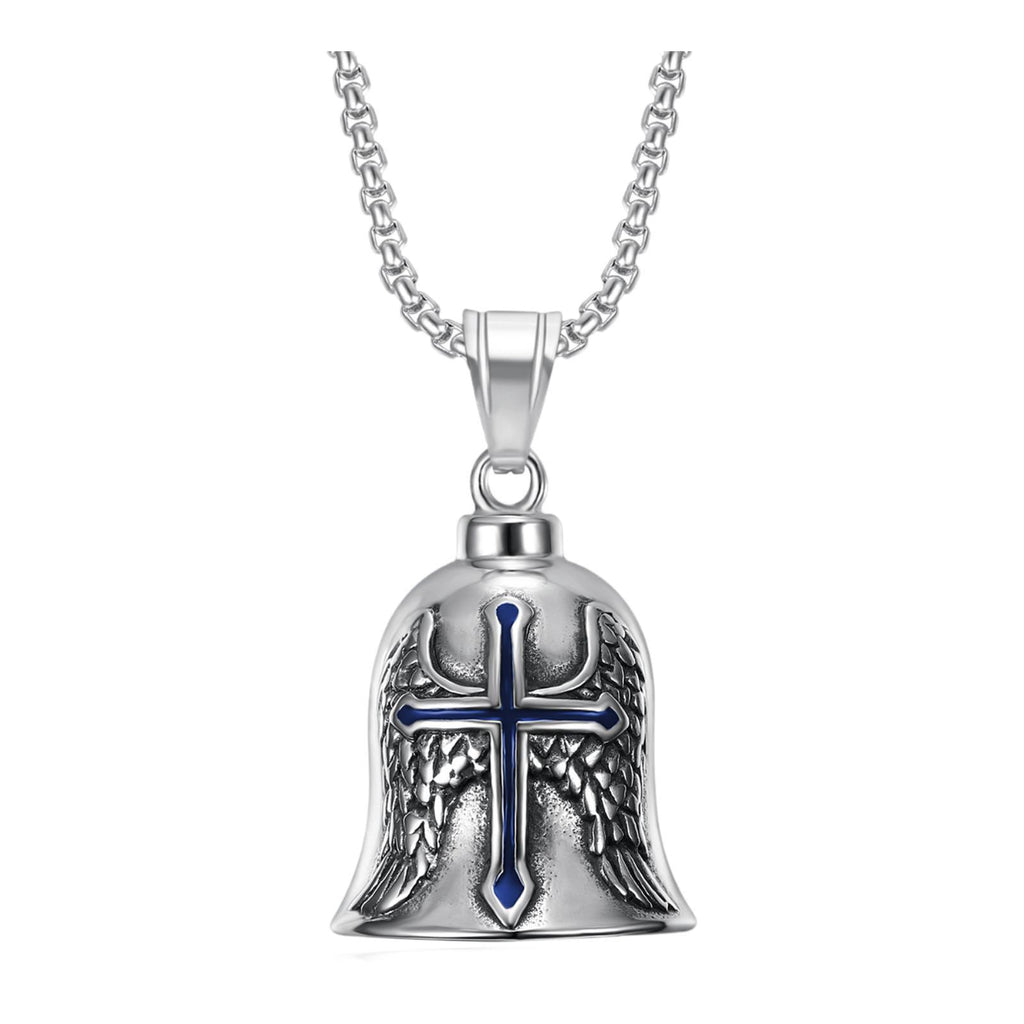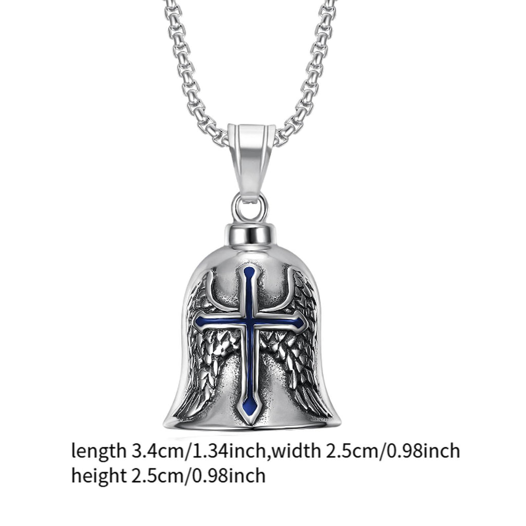 【Punk Design】: Features a cross pendant and a guardian bell for vintage biker aesthetic