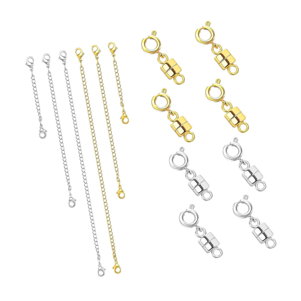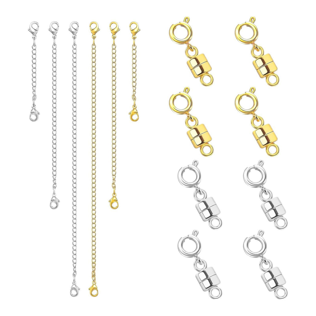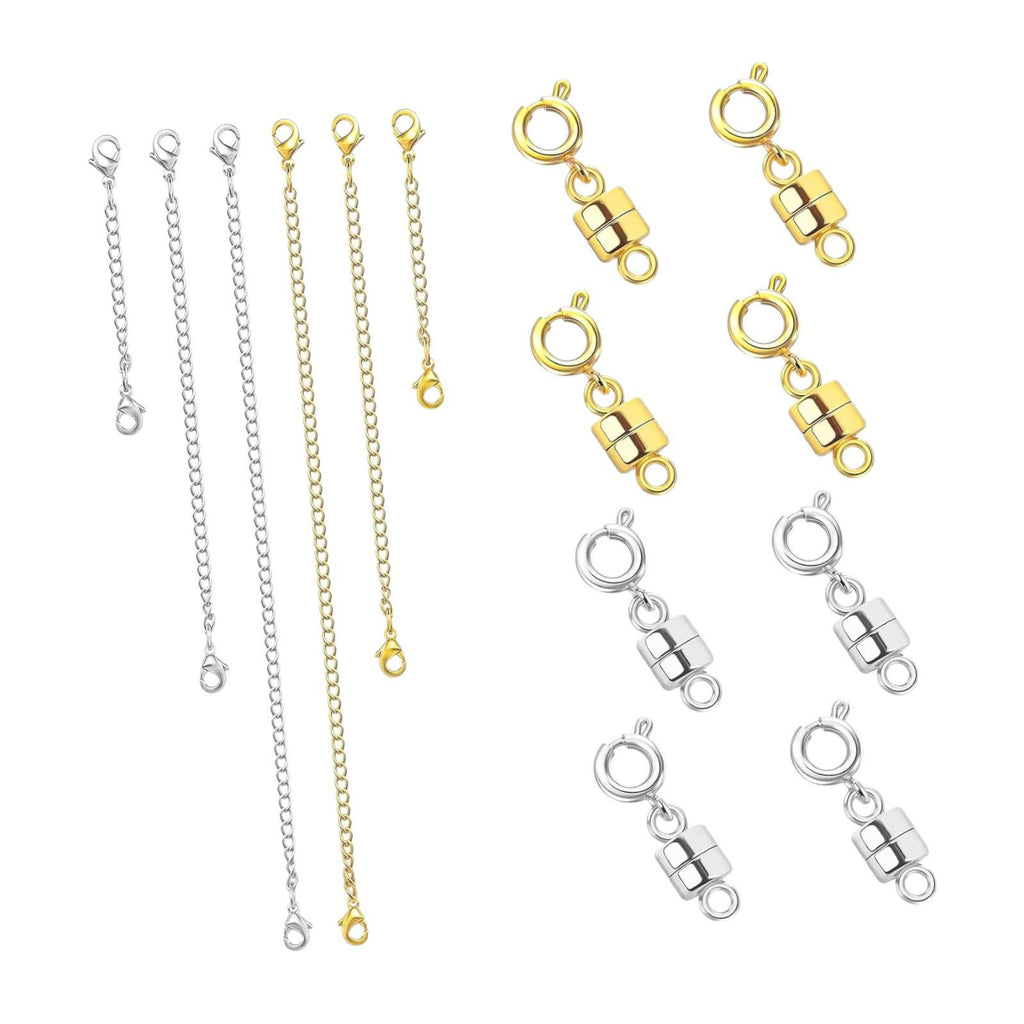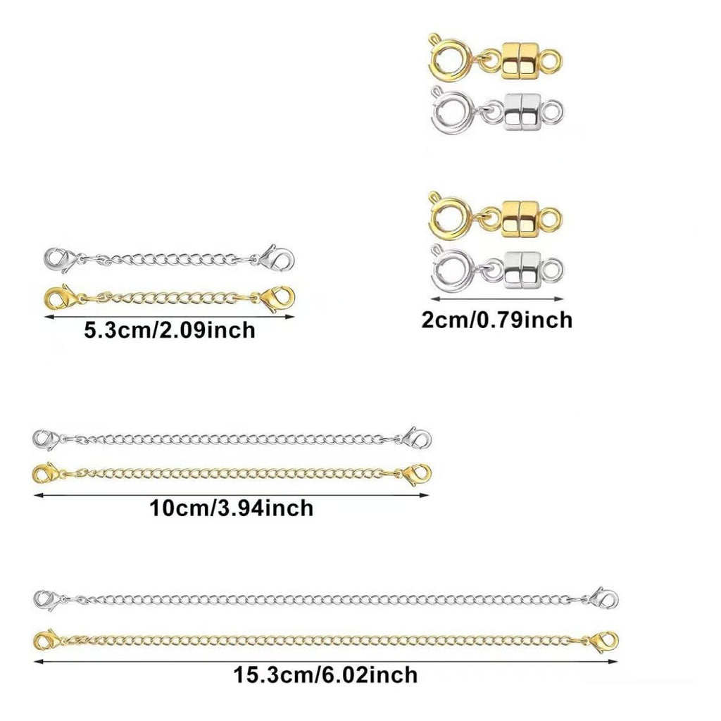 【A Premium 14 Piece Set】: Featuring 8 magnetic clasps and 6 necklace extenders in 3 different lengths. Great for extending, or repairing jewelry, your solution for necklace wearing