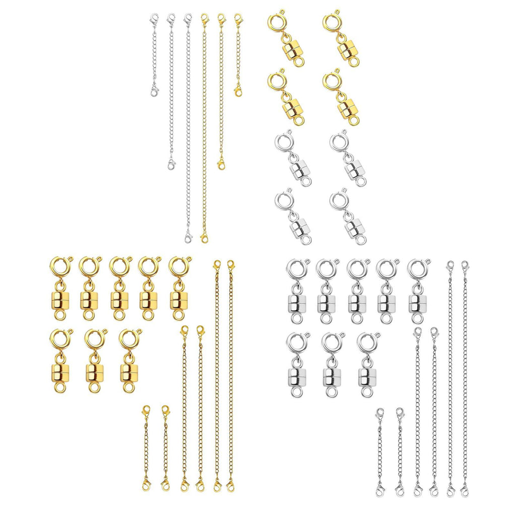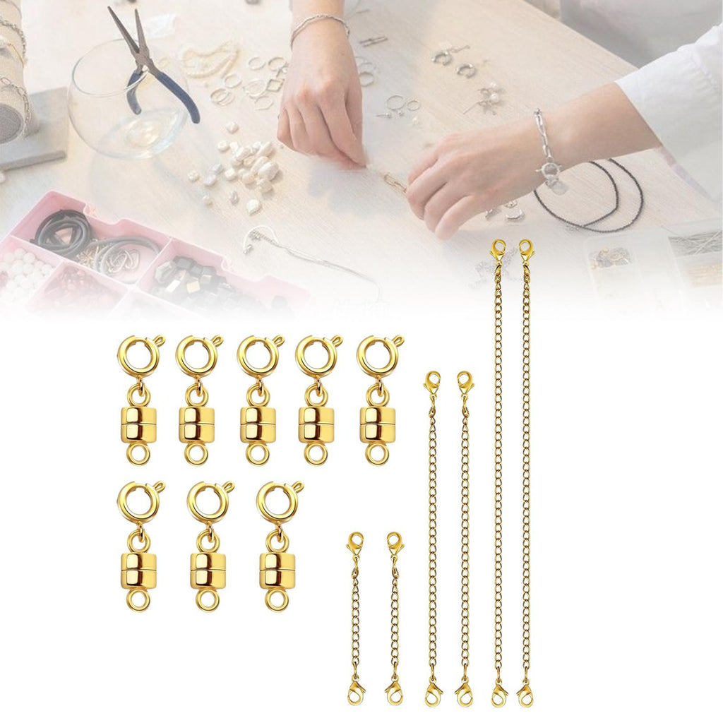 【A Premium 14 Piece Set】: Featuring 8 magnetic clasps and 6 necklace extenders in 3 different lengths. Great for extending, or repairing jewelry, your solution for necklace wearing